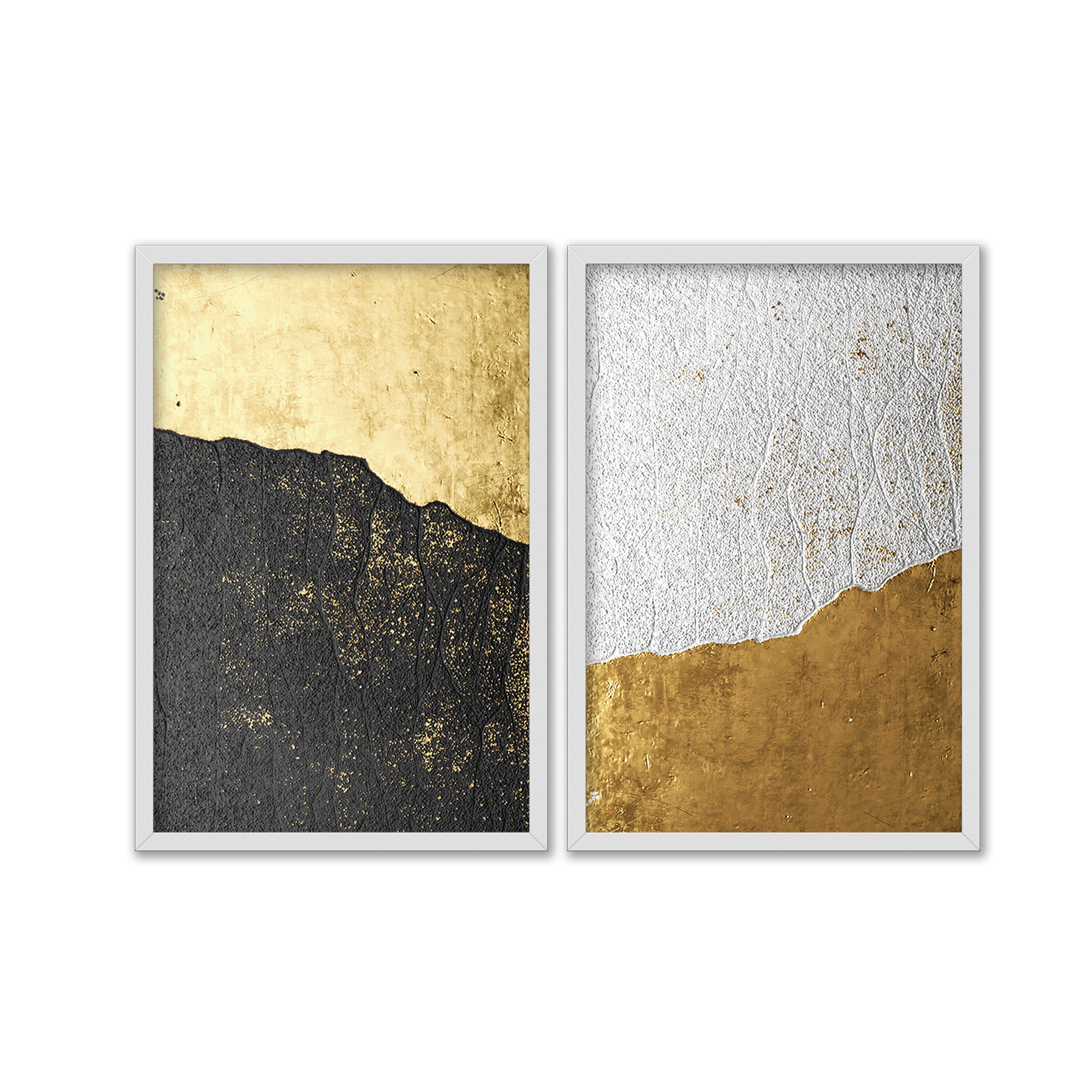 Kit Dois Quadros Decorativos Abstrato Textura Parede Dourado Branco E Preto