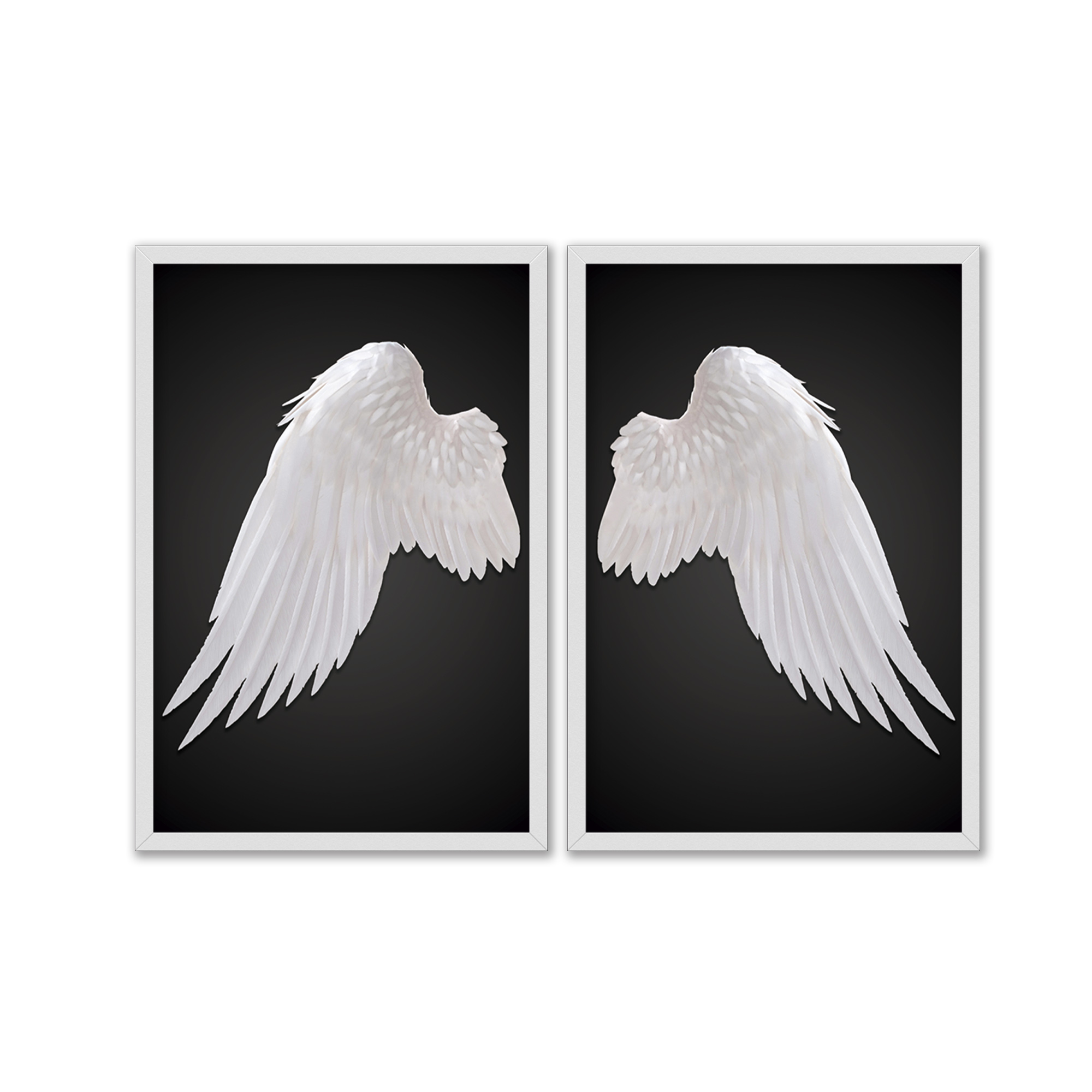 Kit Dois Quadros Decorativos Asas de Anjo Brancas Fundo PRETO