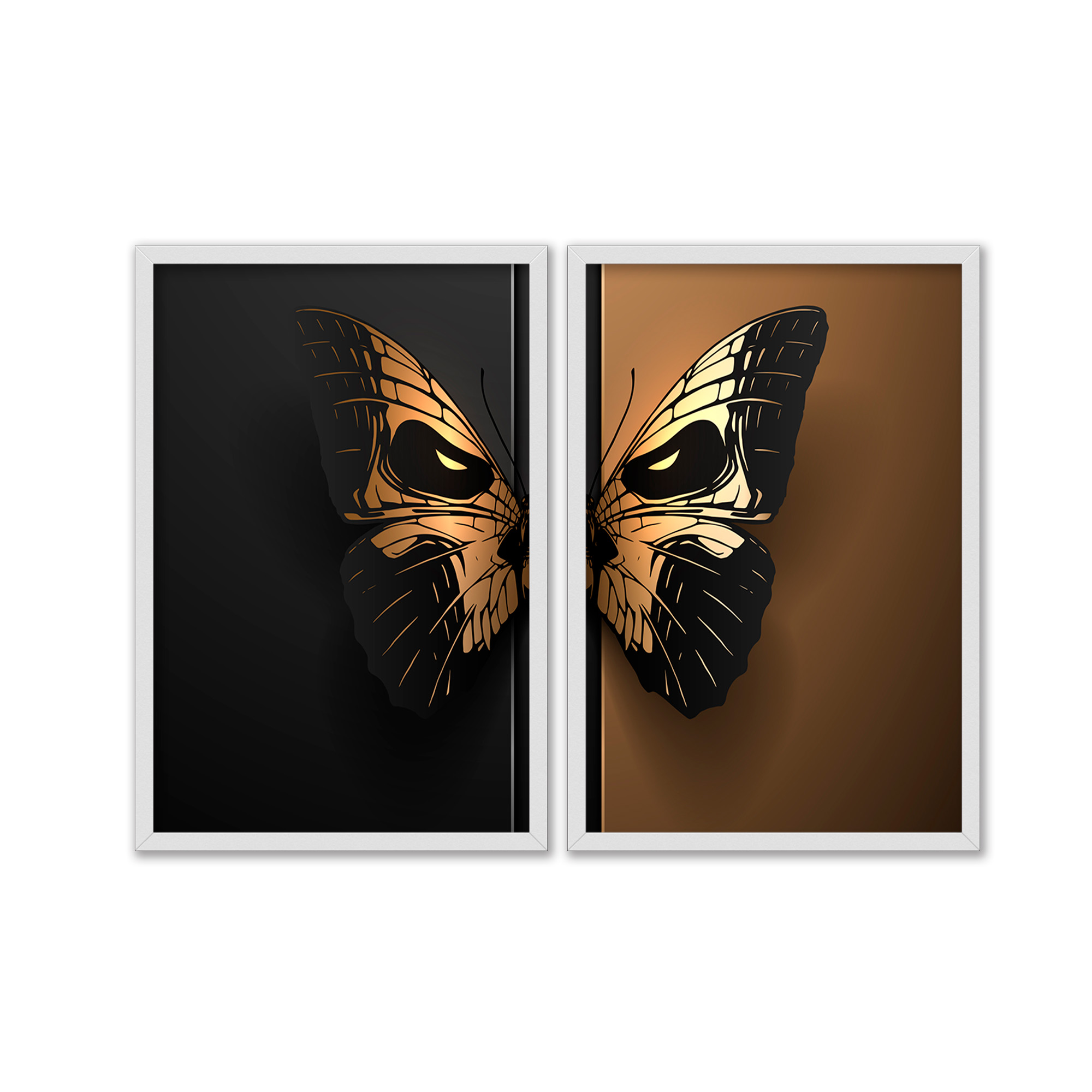Kit Dois Quadros Decorativos Borboleta Caveira Preto E Dourado