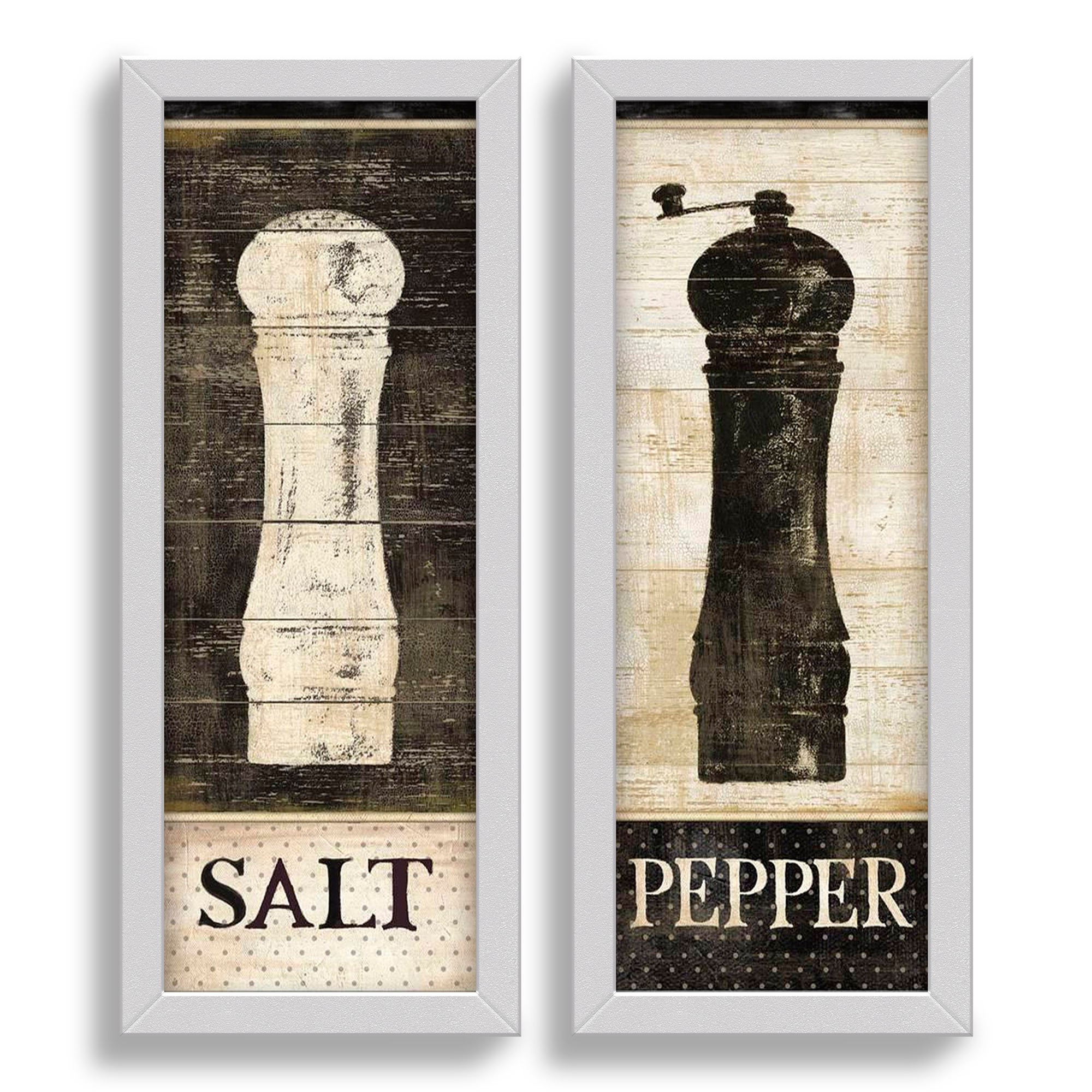 Kit 2 Quadros Lavabo Bege Ripas Preto Madeira Sal Pimenta