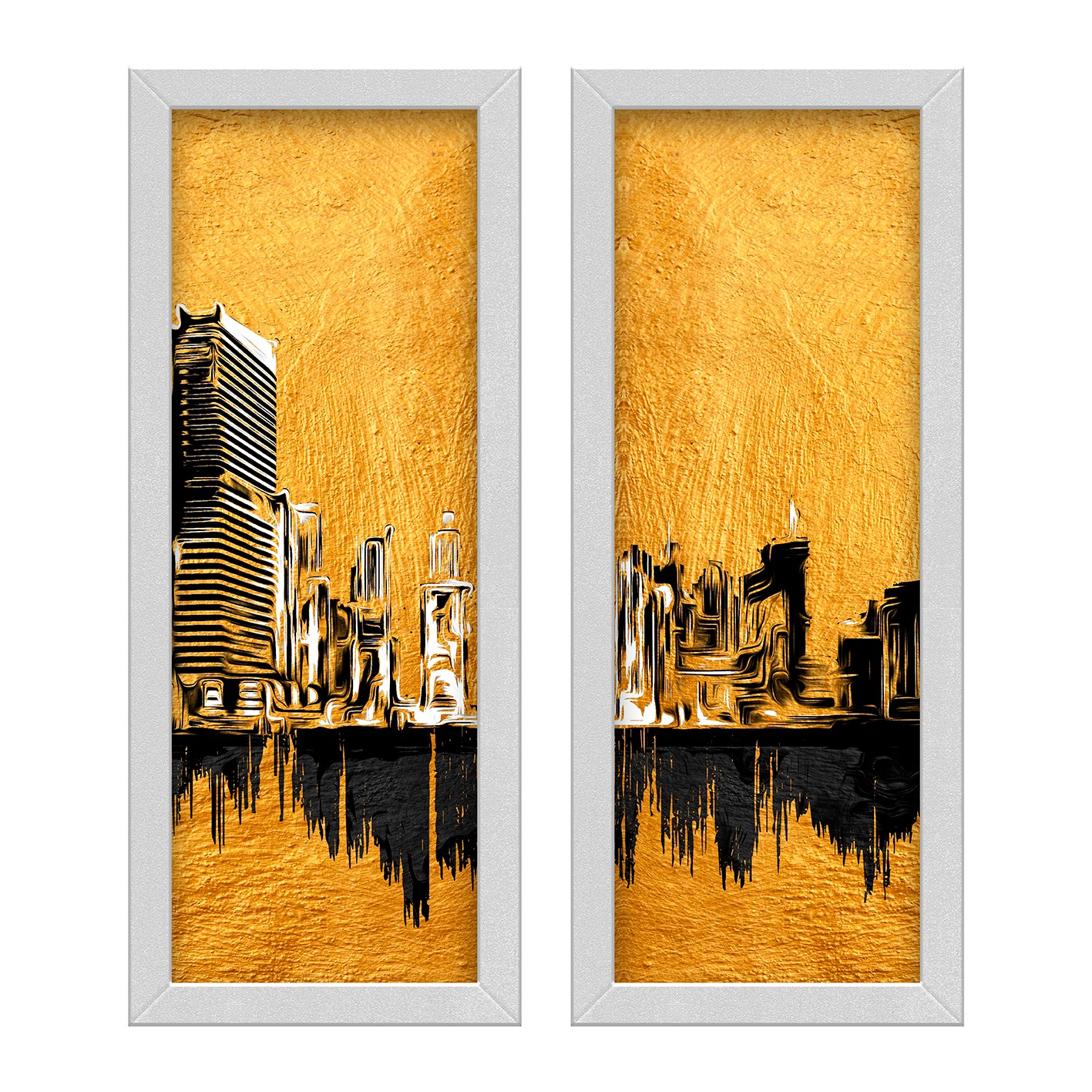 Kit 2 Quadros Lavabo Prédios Efeito Preto Dourado Branco