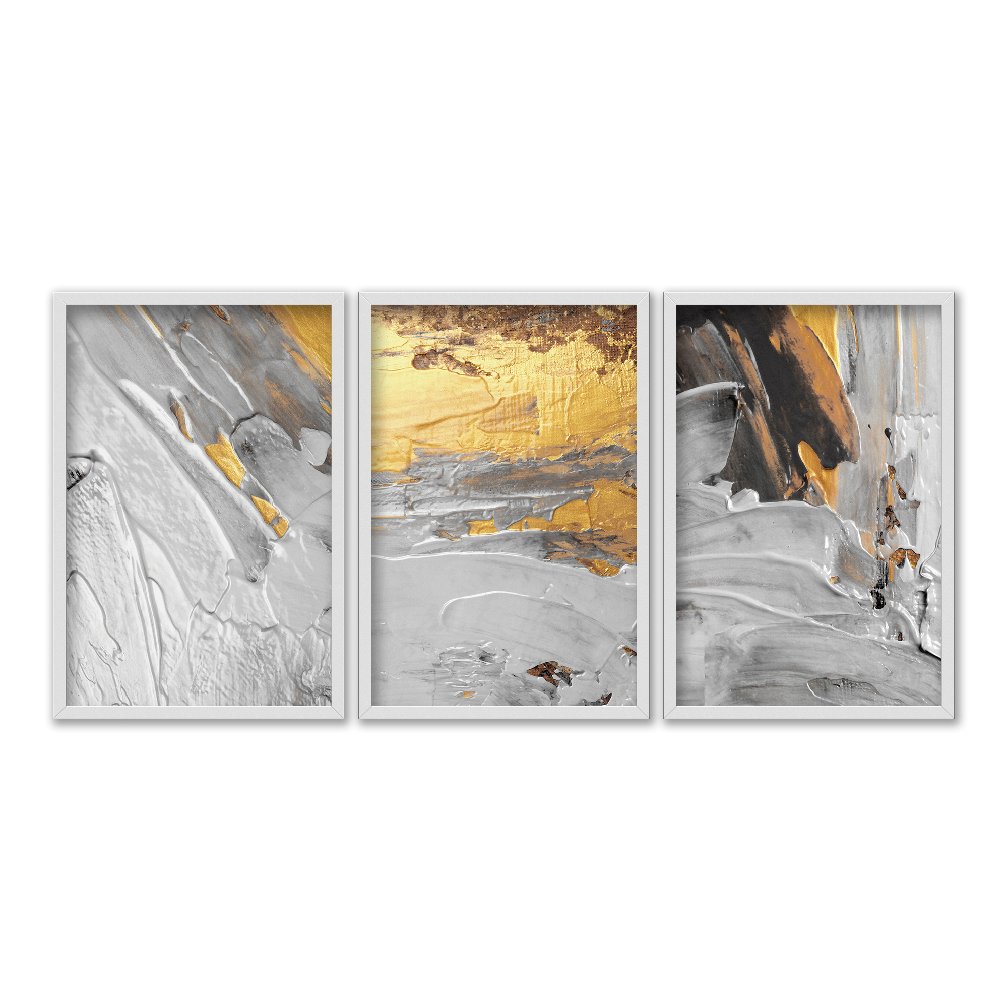 Kit 3 Quadros Decorativos Efeito Pintura Manchas de Tinta Azul Rosa Detalhes Dourados