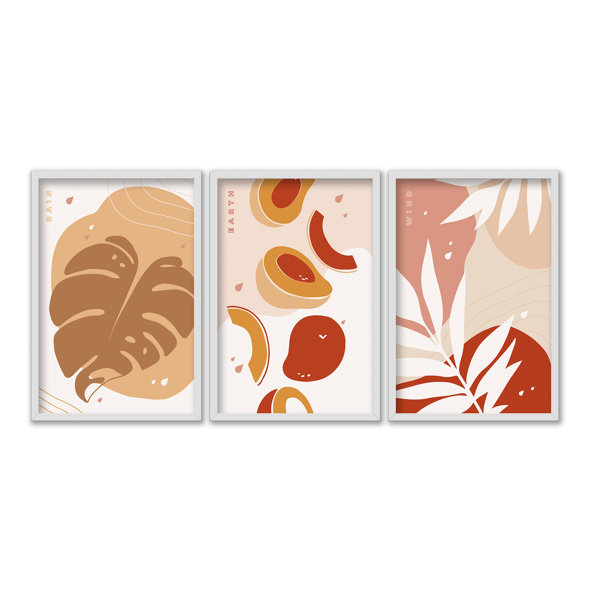 Kit 3 Quadros Decorativos Folhas E Frutras Abstrato Boho