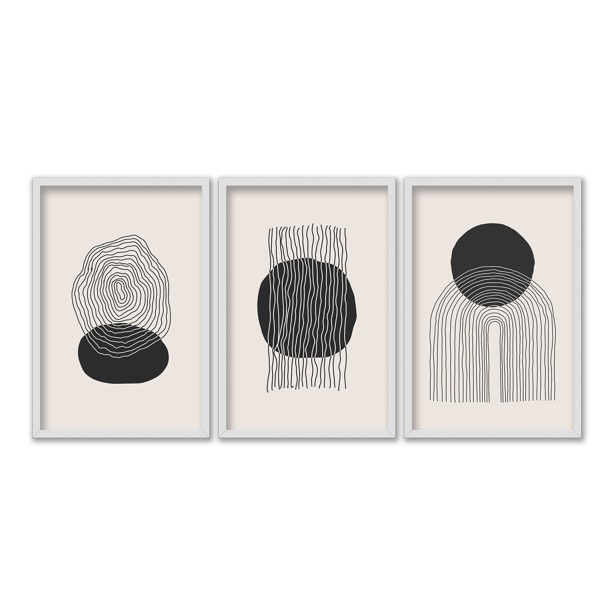 Kit 3 Quadros Decorativos Formas E Linhas Abstratas Preto E Branco
