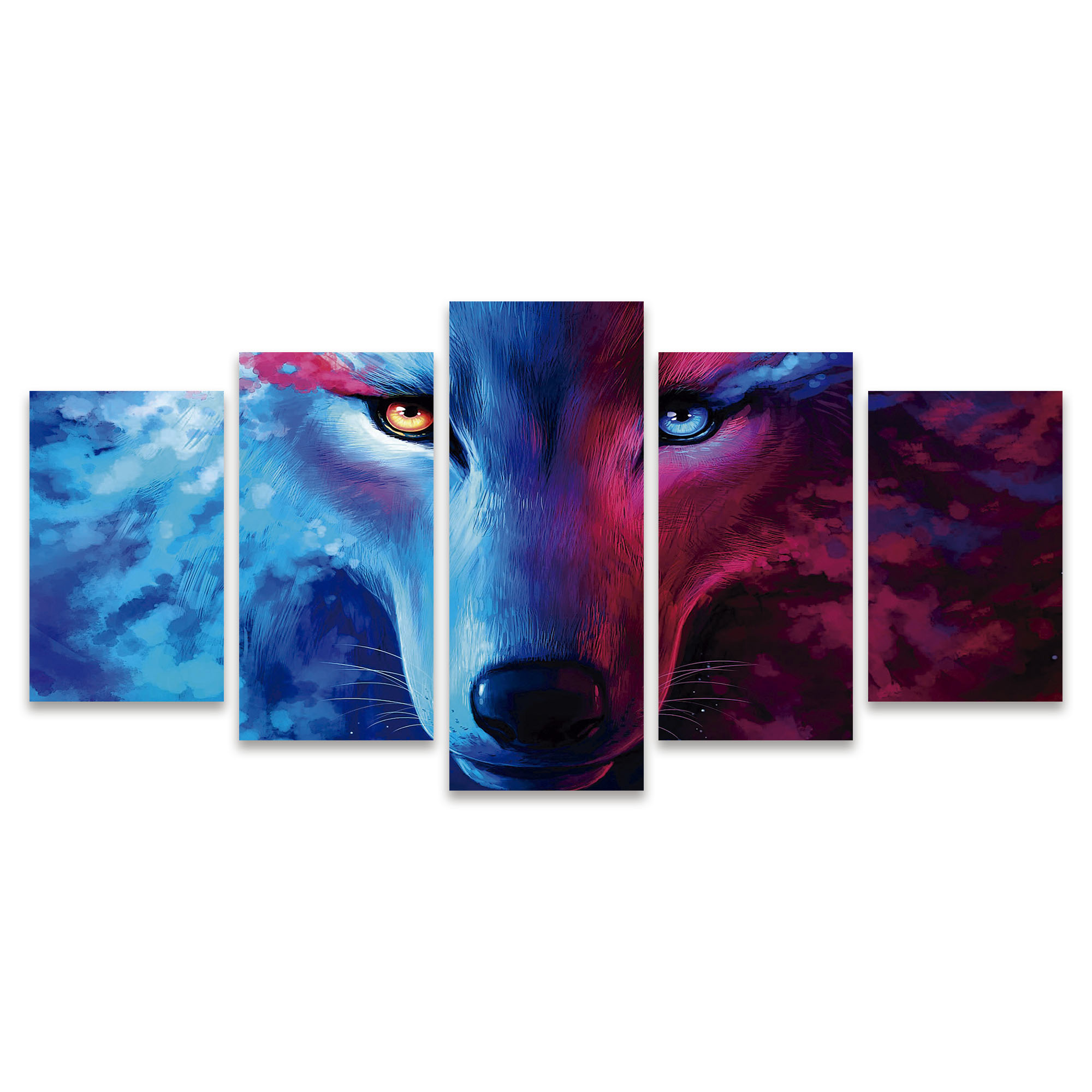 Kit Quadros Mosaico Abstrato Azul Digital Rosa Lobo Arte