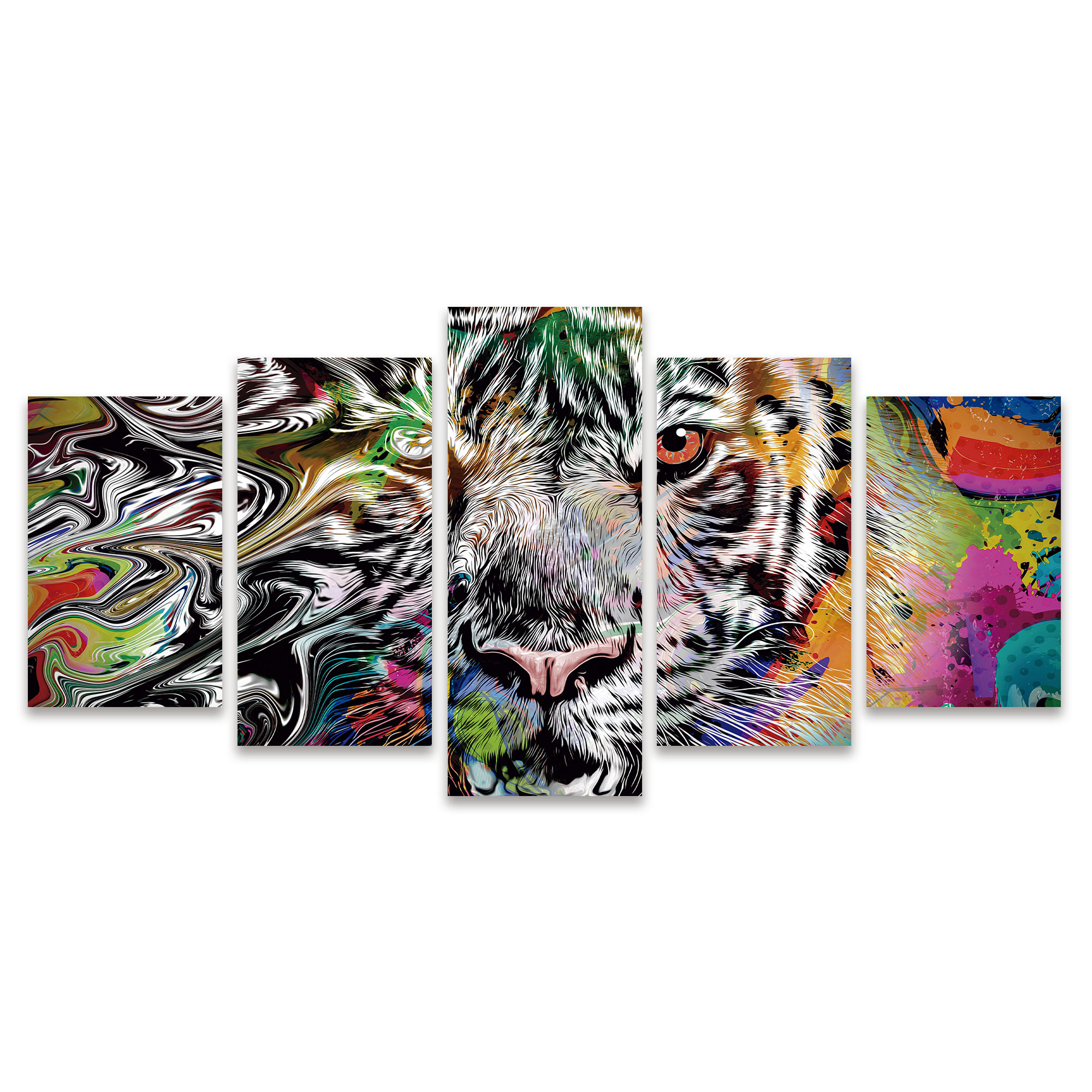 Kit Quadros Mosaico Branco Preto Sala Tigre Fundo Colorido