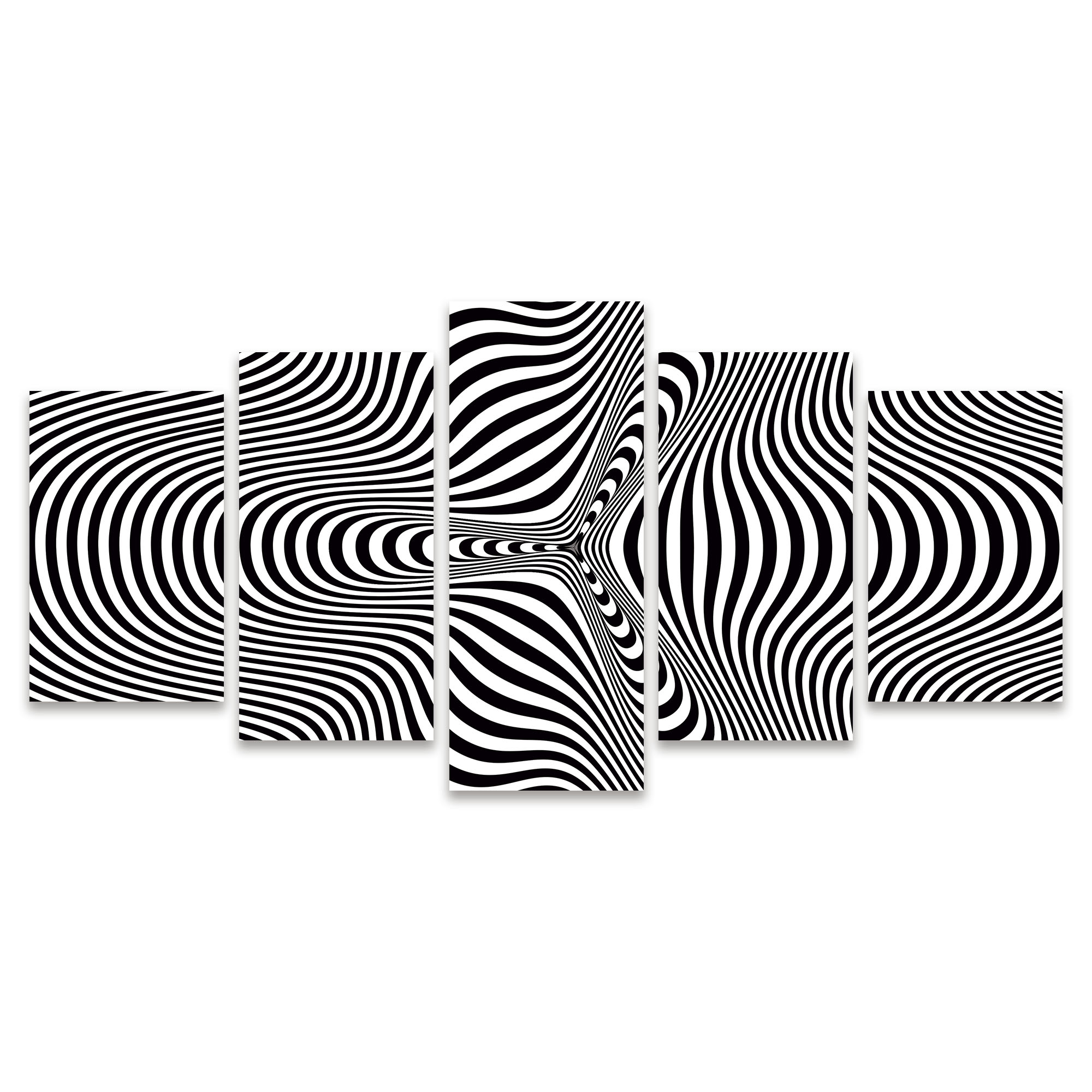 Kit Quadros Mosaico Ótica Branco Quarto Preto Ilusão Linhas