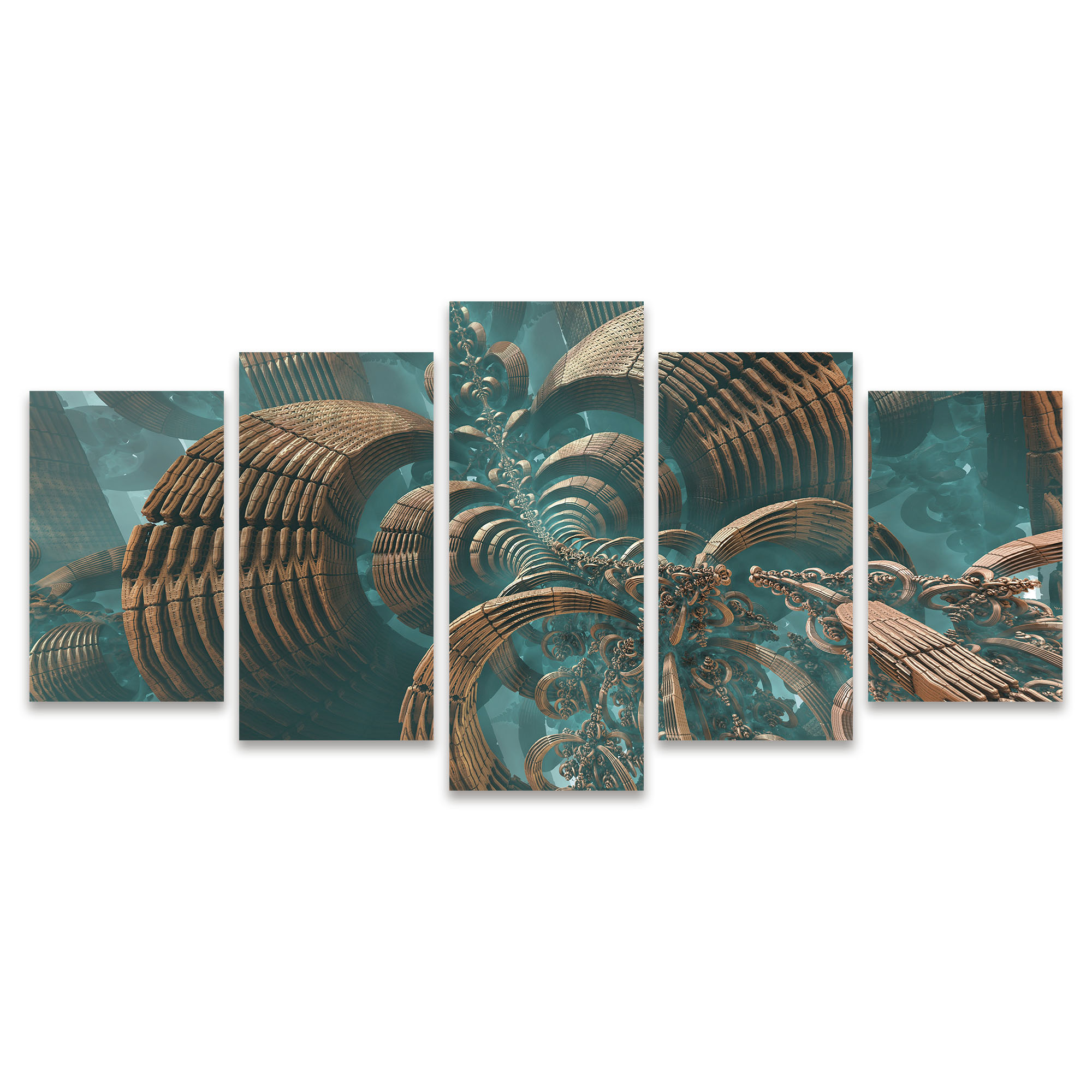 Kit Quadros Mosaico Psicodélico Futurista Verde Fractal