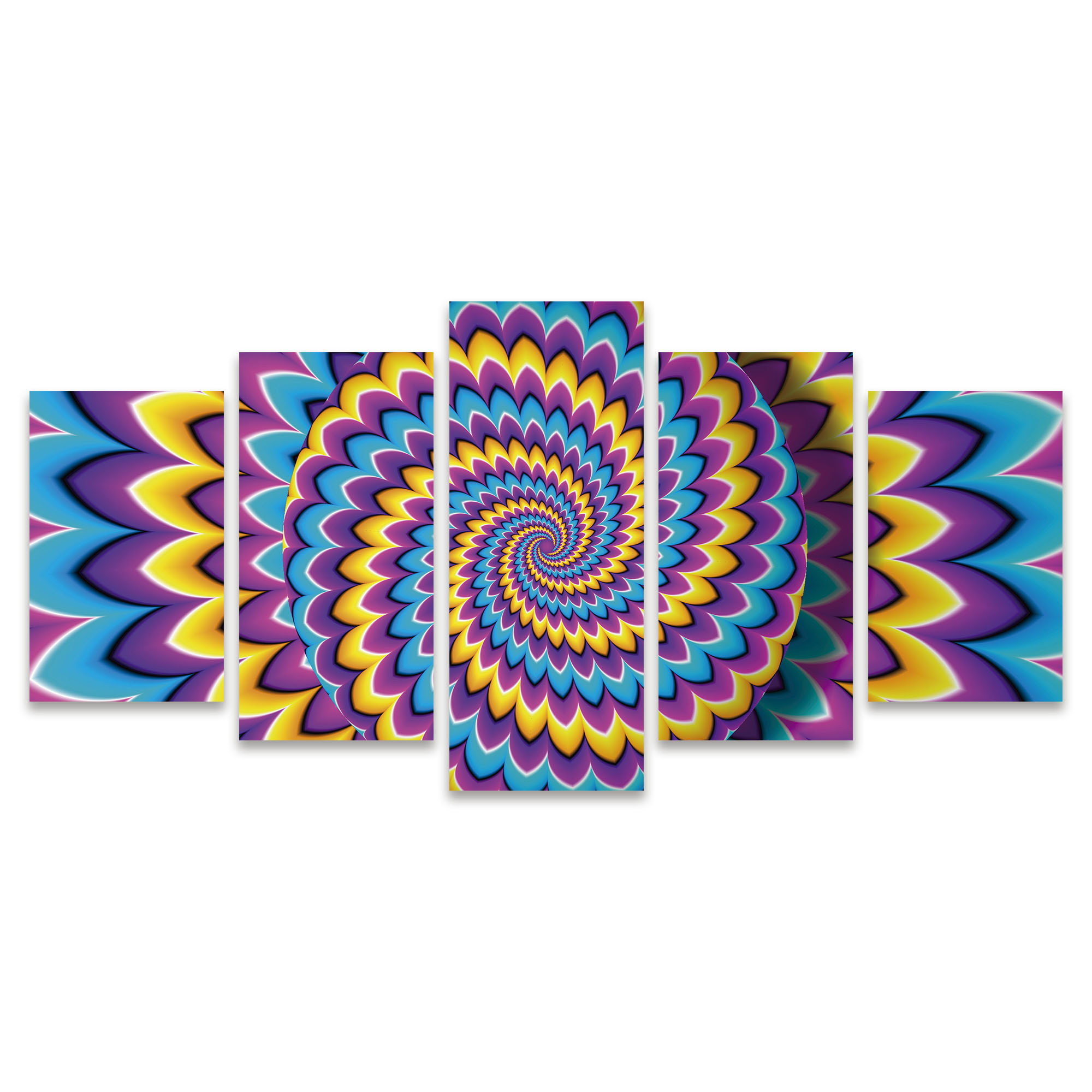 Kit Quadros Mosaico Psicodélico Ilusão Ótica Amarelo Azul
