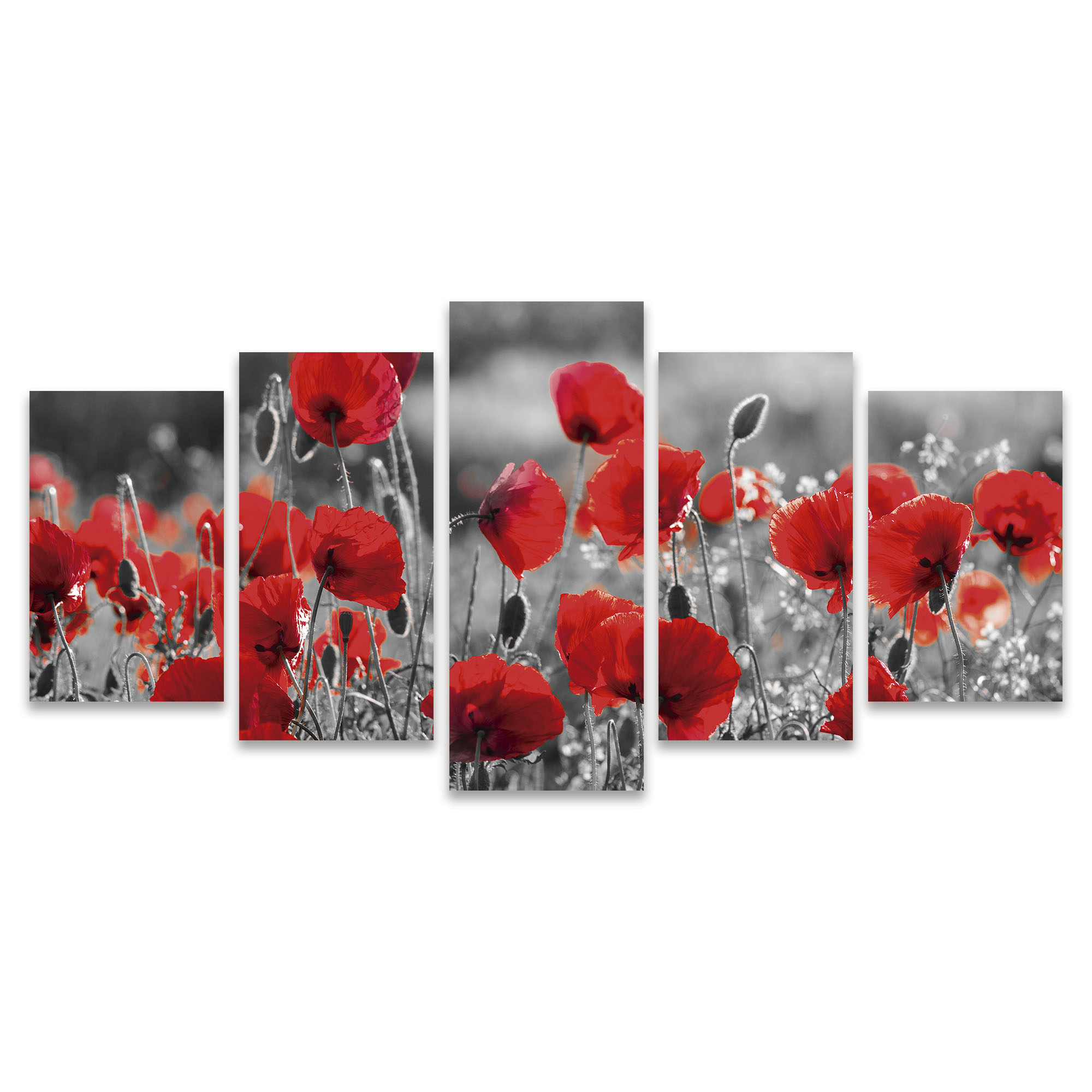 Kit Quadros Mosaico Vermelho Flor Cinza Sala Floral Papoula