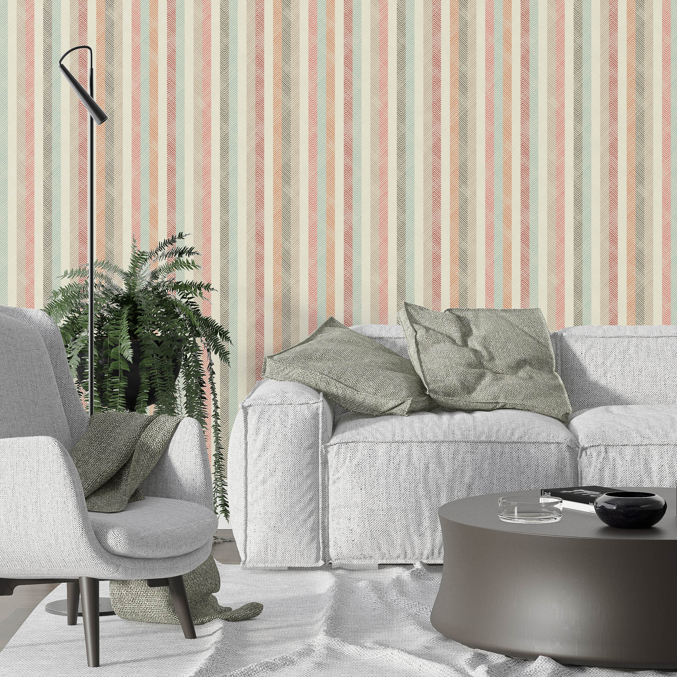 Papel de Parede Adesivo Vinil Linho Colors Textura Verde e Vermelho Sala Quarto