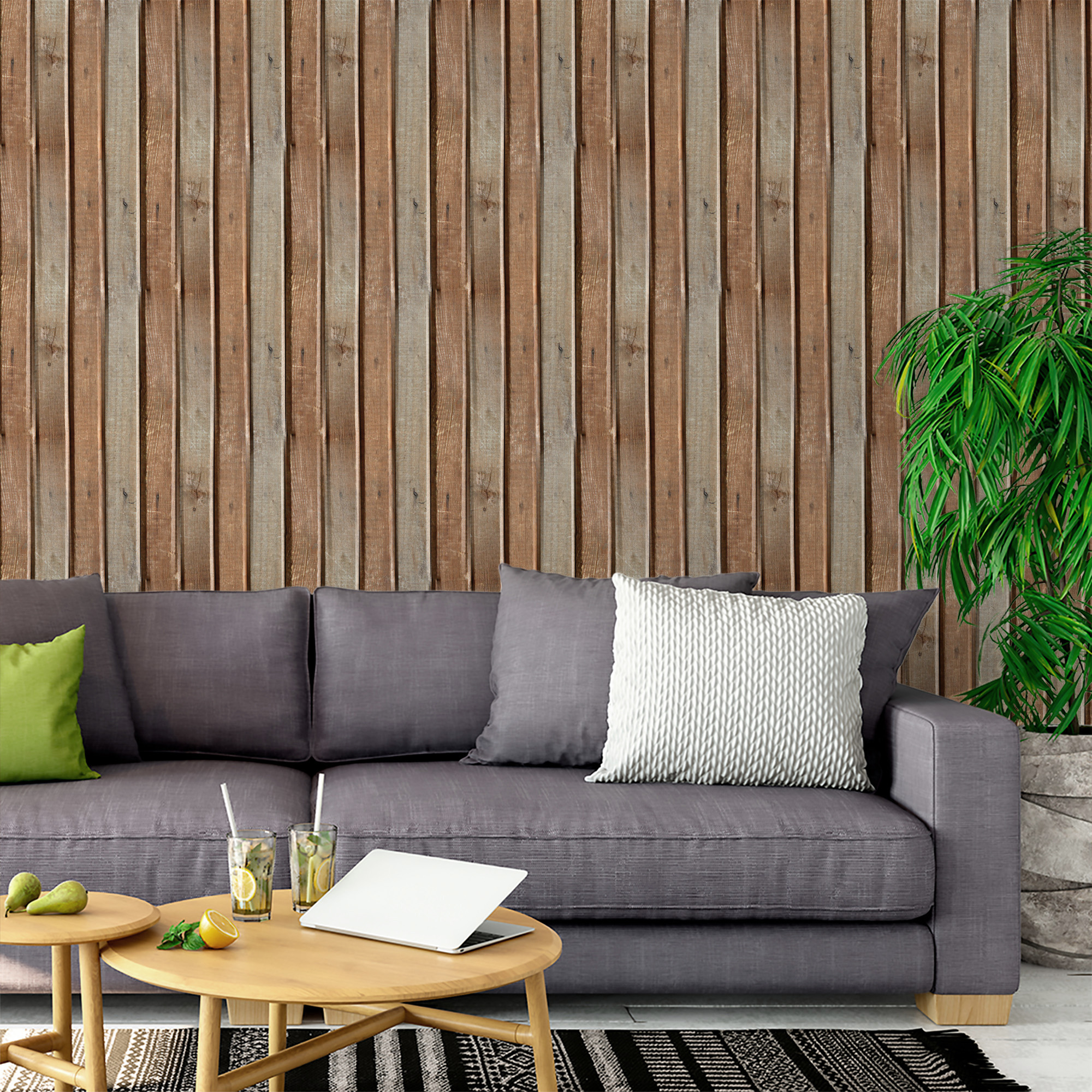 Papel de Parede Adesivo Vinil Madeira Marrom Natural Ripas Demolição Sala Quarto Cozinha