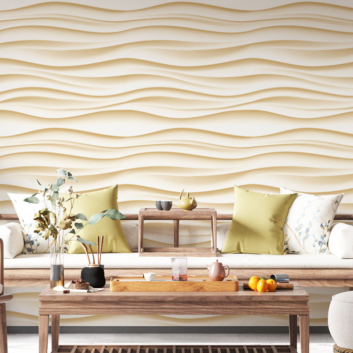 Papel de Parede Adesivo Vinil Ondas Bege Nude 3D Areia Sala Quarto Cozinha