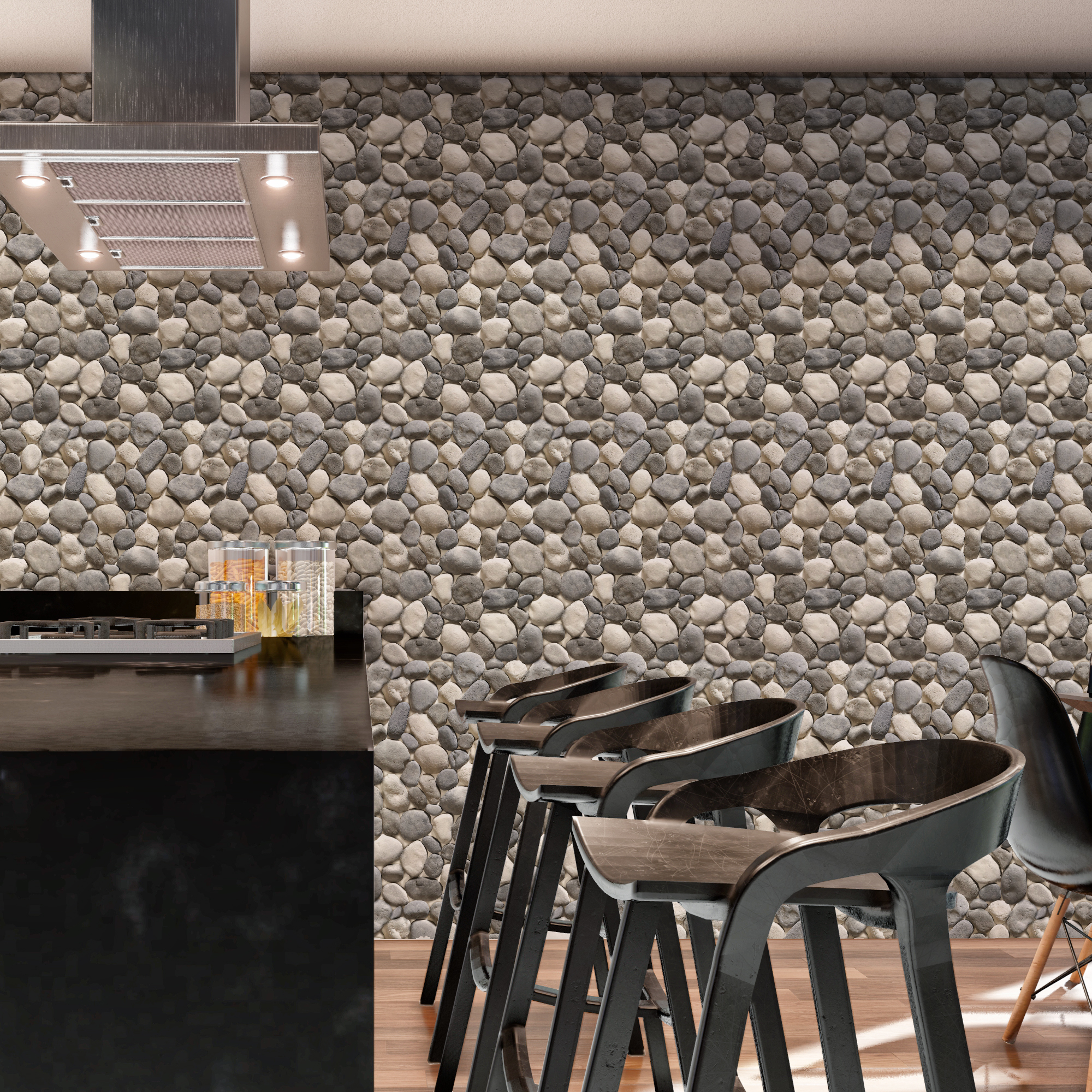 Papel de Parede Adesivo Vinil Pedras Efeito Realismo Rústico Cinza Sala Cozinha Varanda Gourmet