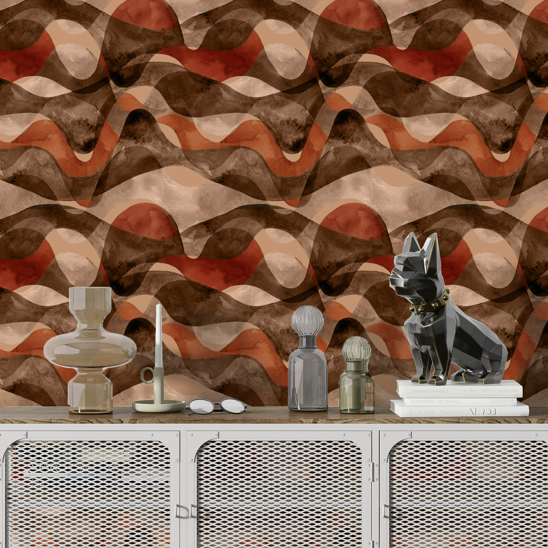 Papel de Parede Adesivo Vinil Ondas Marrom Abstrato Quarto Sala Cozinha