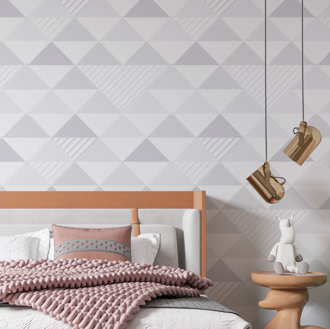 Papel de Parede Adesivo Vinil Triângulos Tons Cinza Quarto Infantil Sala