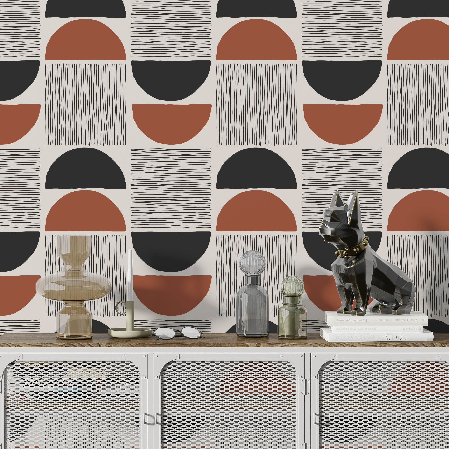 Papel de Parede Adesivo Vinil Abstrato Linhas Moderno Geométrico Boho Marrom Sala Cozinha Quarto