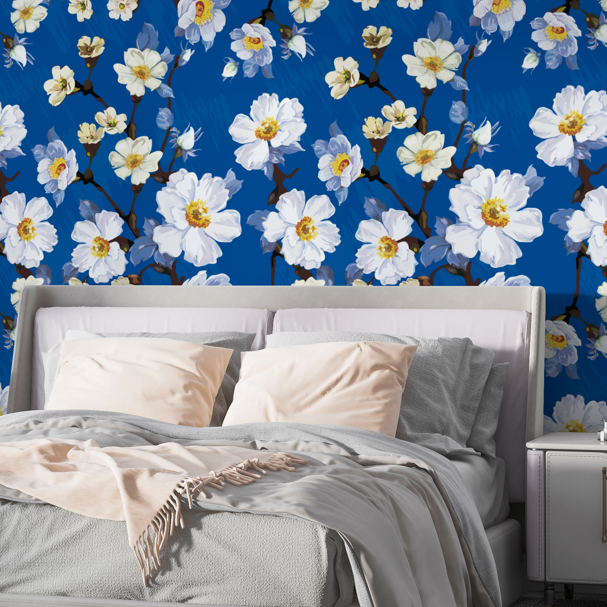 Papel de Parede Adesivo Vinil Flor Margarida Pintura Azul Aquarela Sala Quarto
