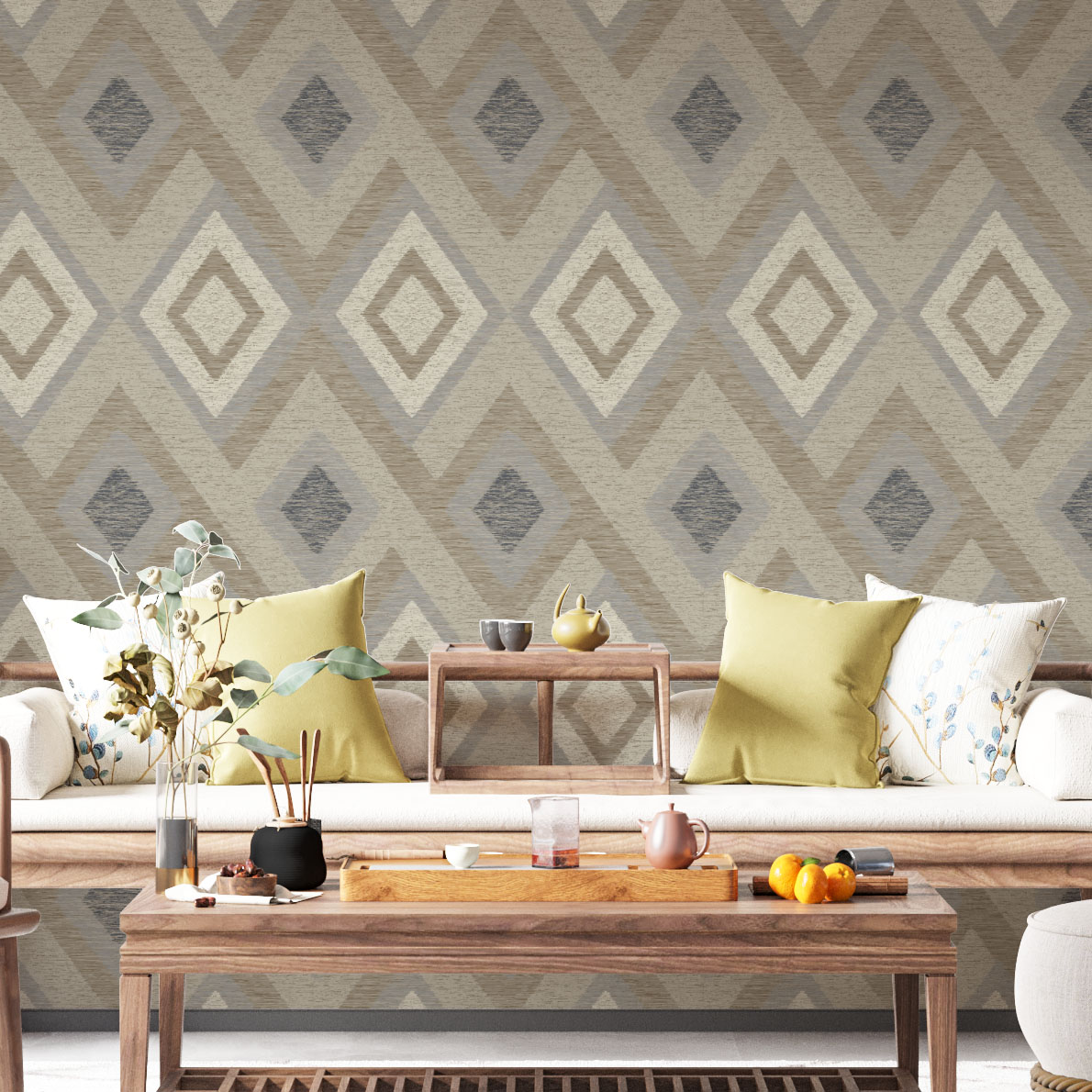 Papel de Parede Adesivo Vinil Losângo VIntage Bege Efeito Linho Sala Quarto