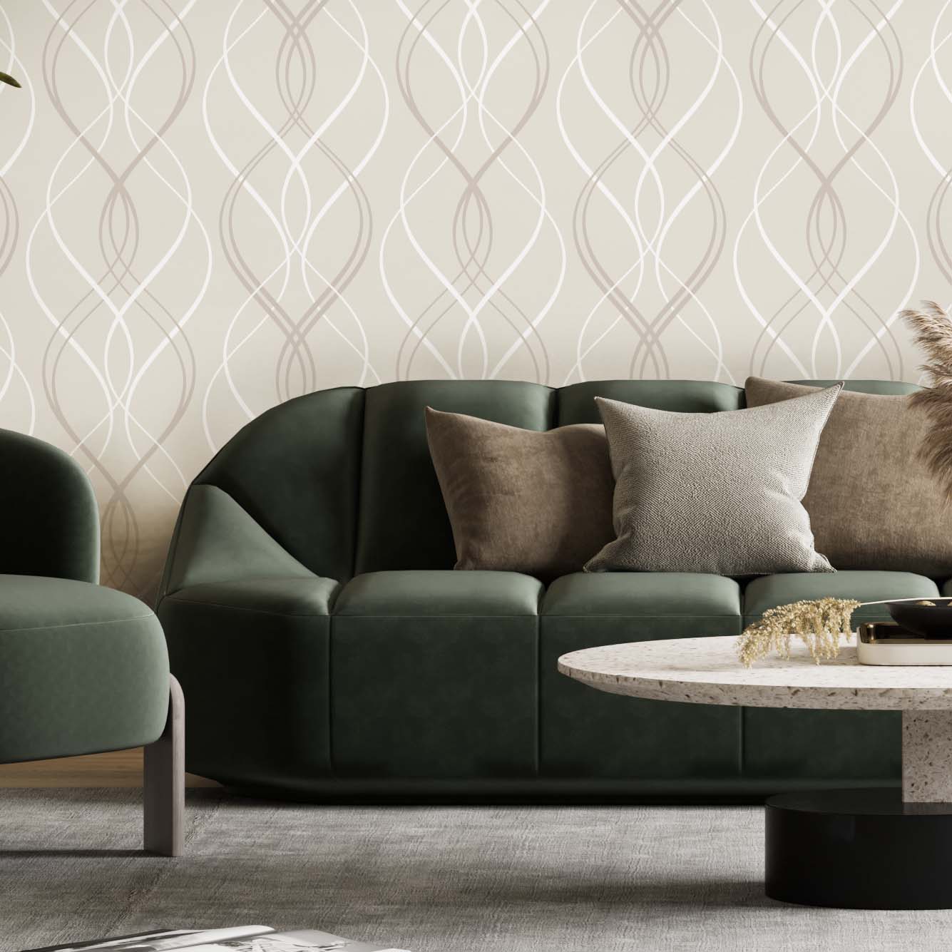 Papel de Parede Adesivo Vinil Ondas Abstrato Bege Nude Marrom Clássico Sala Quarto