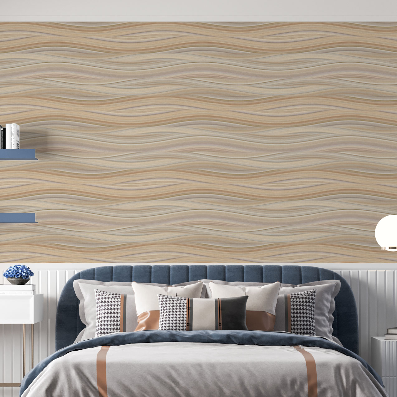 Papel de Parede Adesivo Vinil Ondas Bege Azul Marrom Tapeçaria Cozinha Sala Quarto