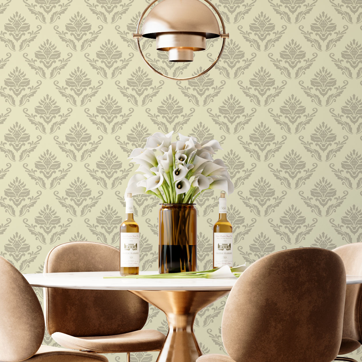Papel de Parede Adesivo Vinil Arabesco Provençal Amarelo Cinza Vintage Cozinha Sala