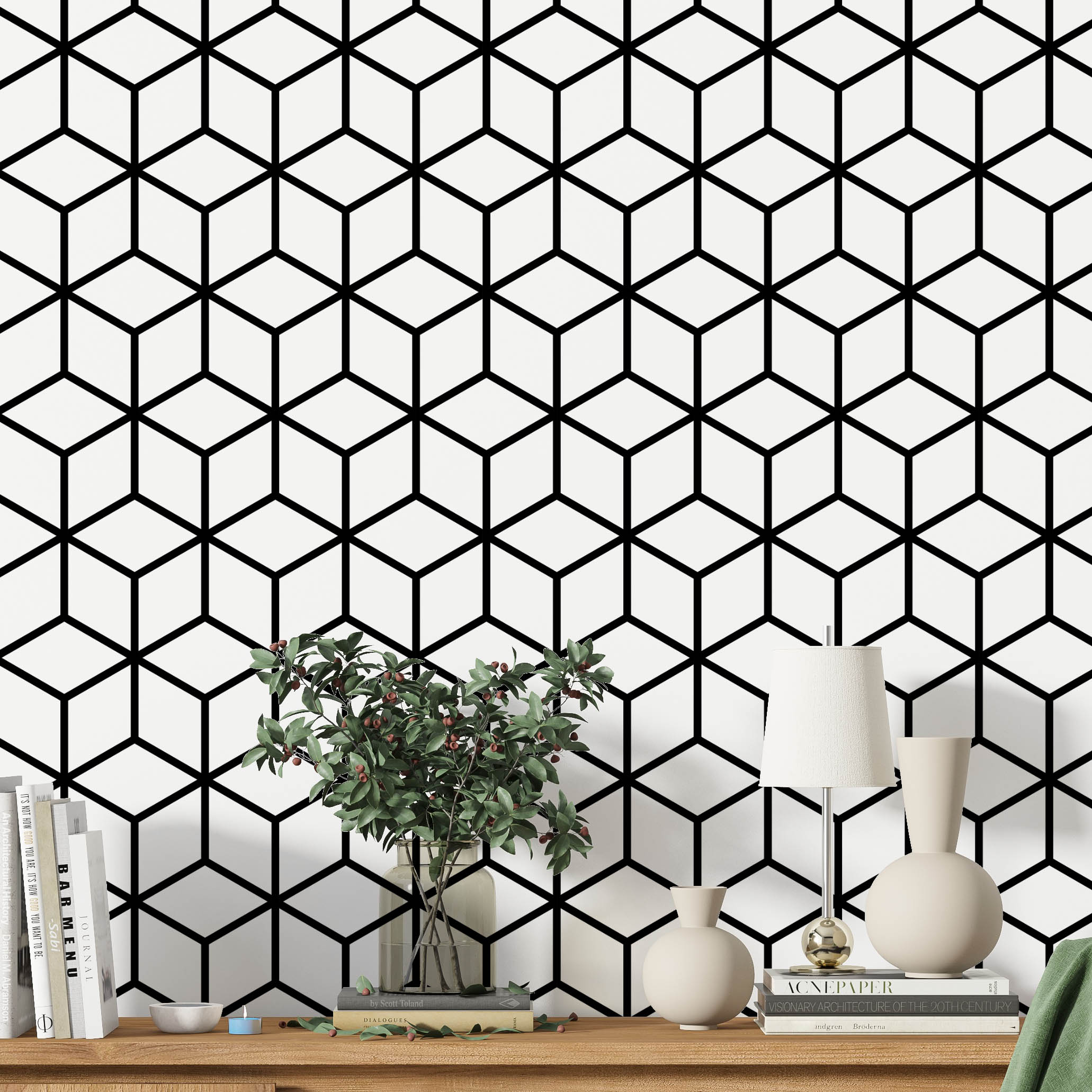 Papel de Parede Adesivo Vinil Quadrado Geométrico 3D Preto e Branco Sala Quarto