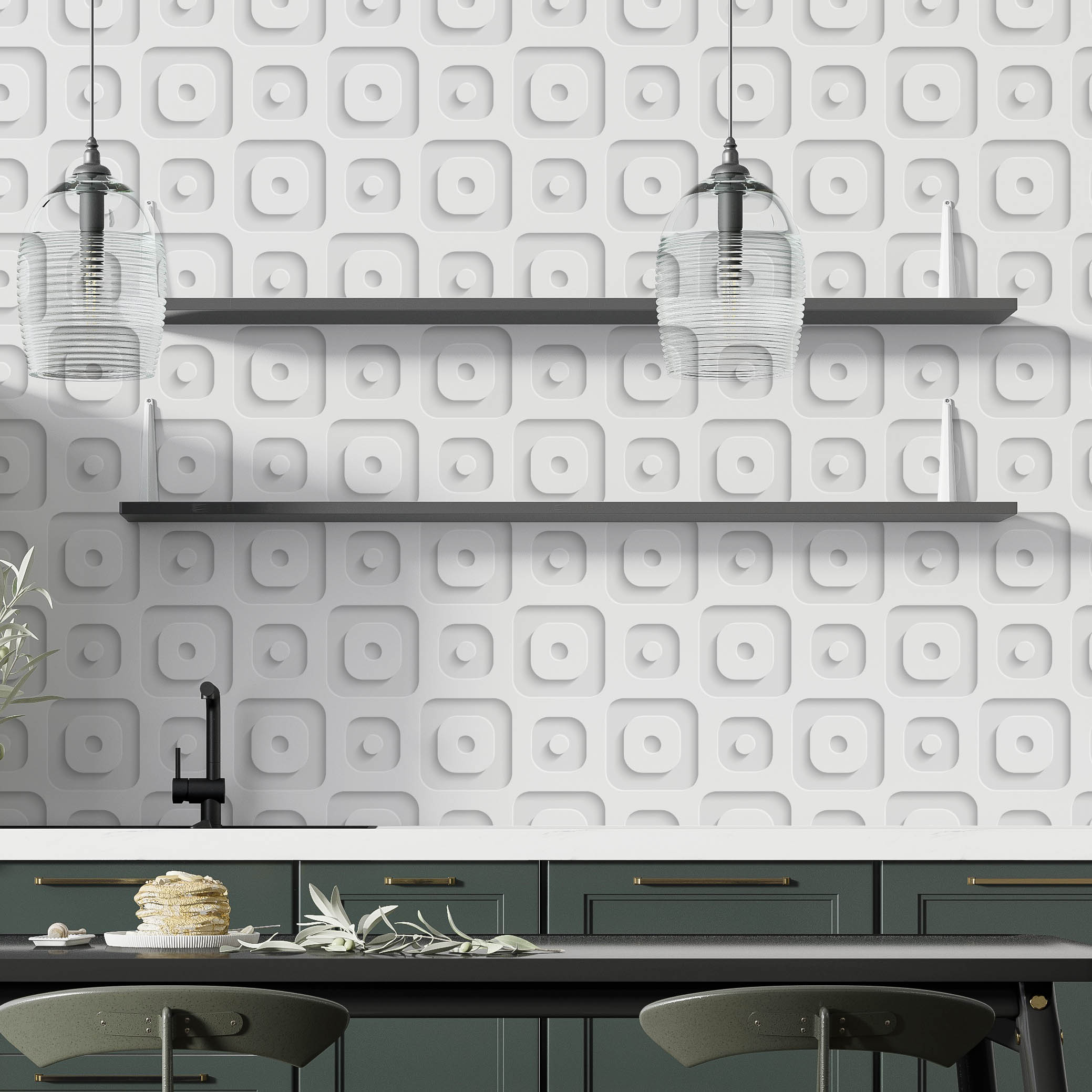 Papel de Parede Adesivo Vinil Quadrados Circulo Gesso Efeito 3D Profundidade Cinza Quarto Sala Cozinha