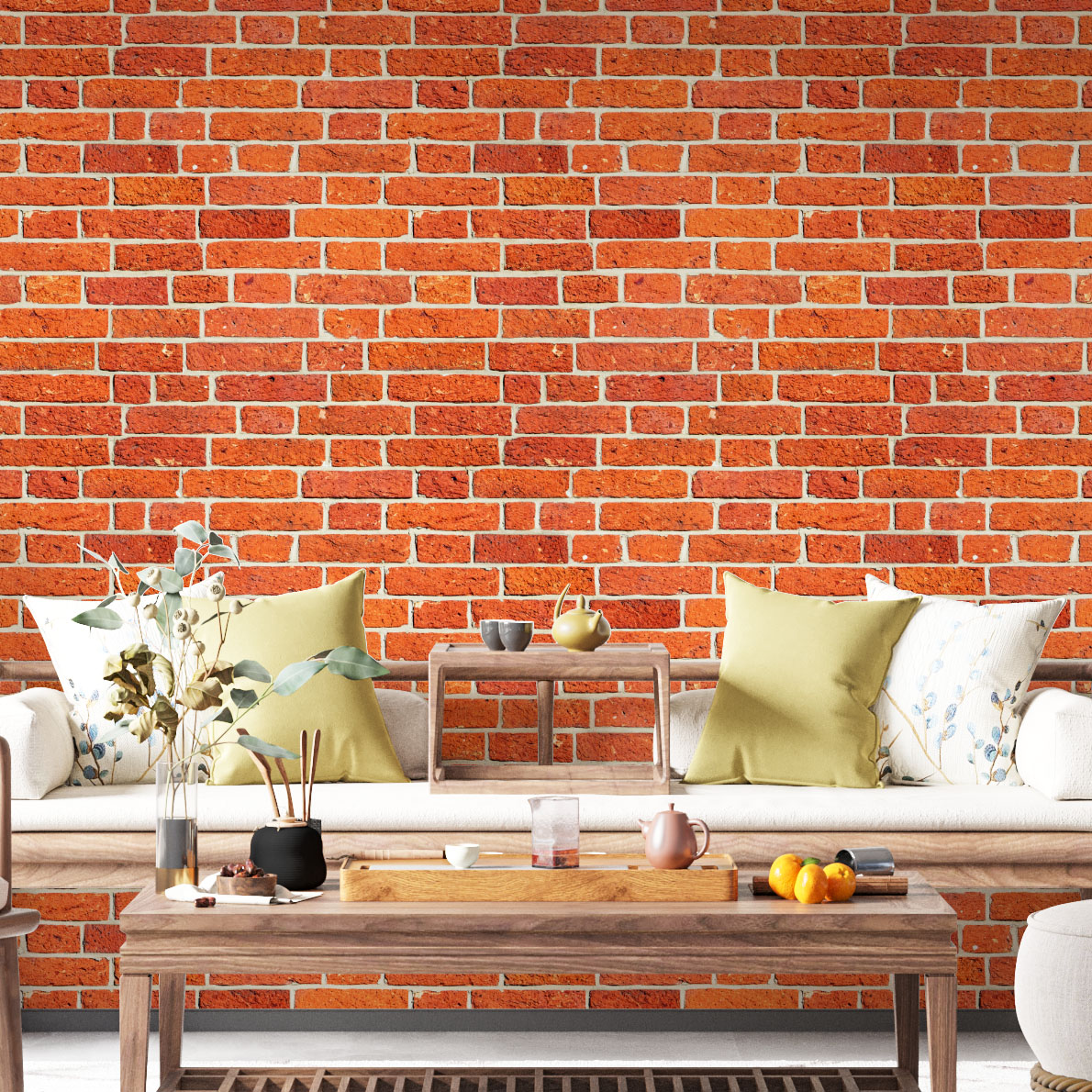 Papel de Parede Adesivo Vinil Tijolinho Rústico Pedra Exposto Laranja Vintage Sala Quarto