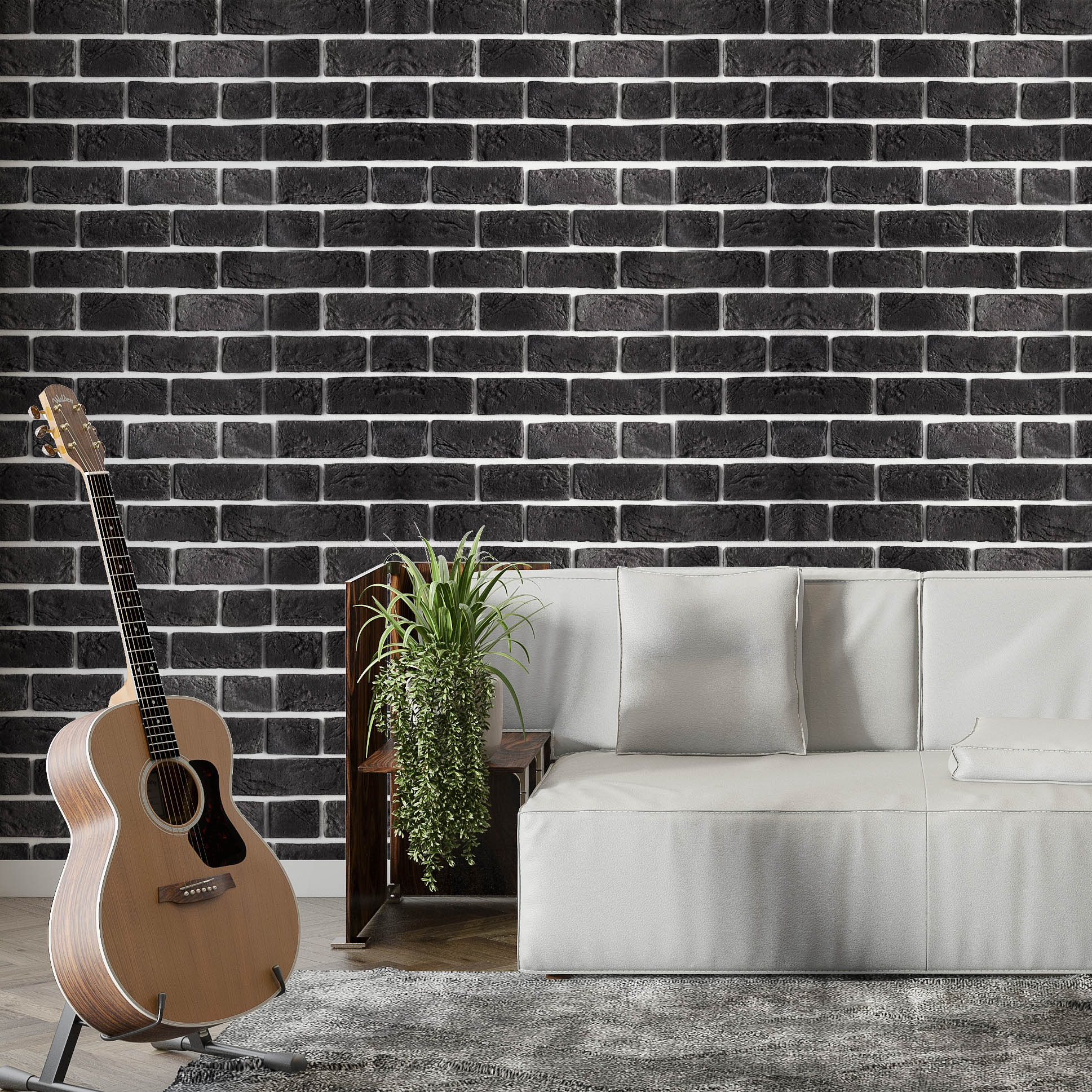 Papel de Parede Adesivo Vinil Sala Tijolinho Rustico Preto Vintage Sala Cozinha Quarto
