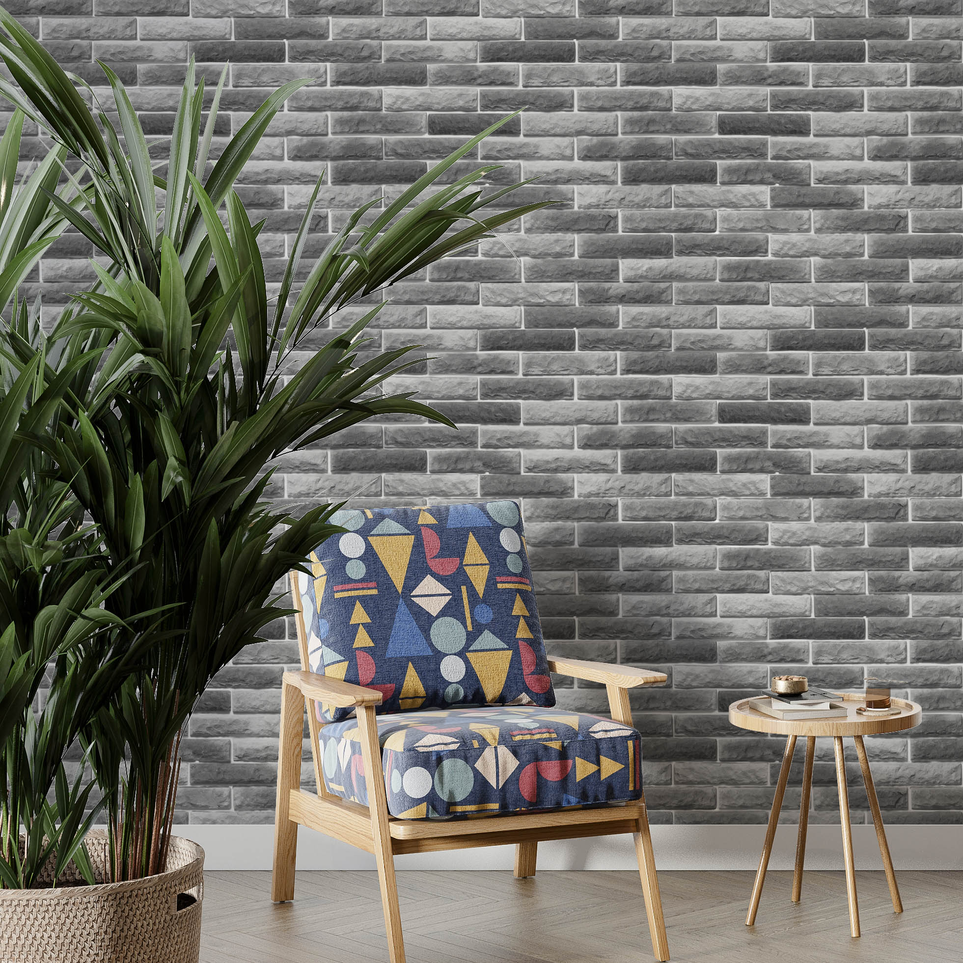 Papel de Parede Adesivo Vinil Tijolinhos Tijolo Cinza Pedras Rústico Sala Quarto