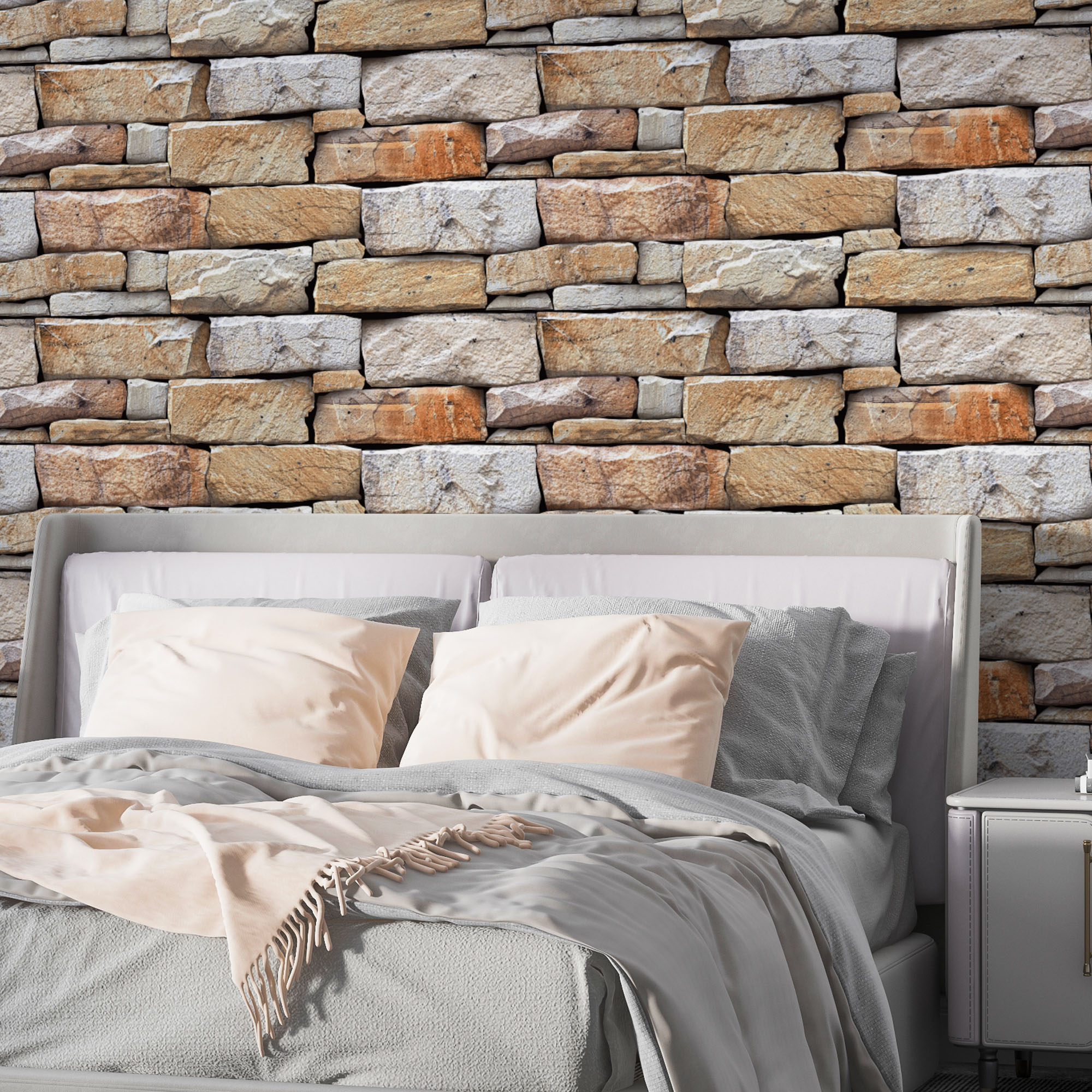 Papel de Parede Adesivo Vinil Tijolos Efeito 3D Pedra Laranja Rústico Exposto Vintage Sala Quarto