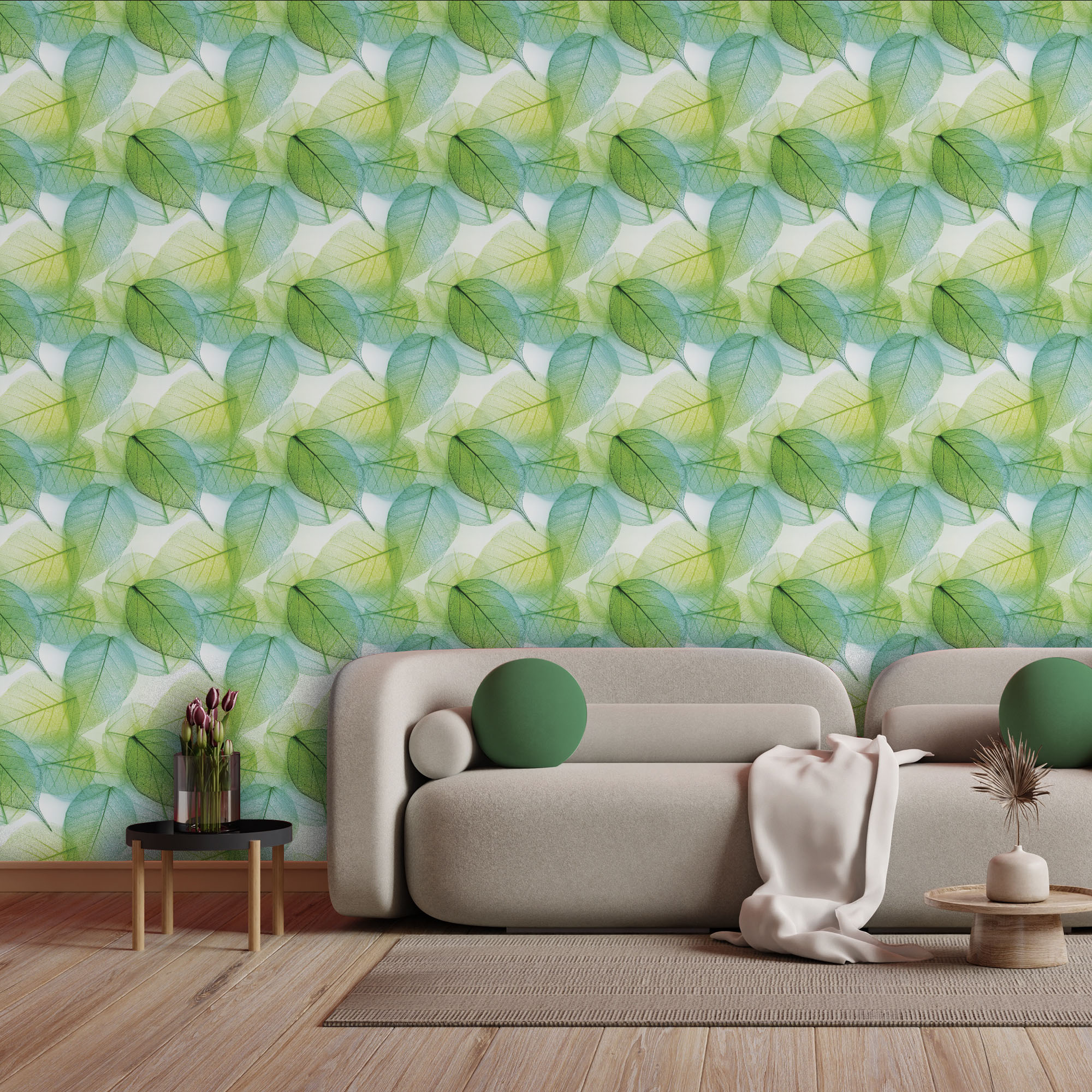 Papel de parede Autoadesivo Folhagem Translúcida Azul Verde Amarelo