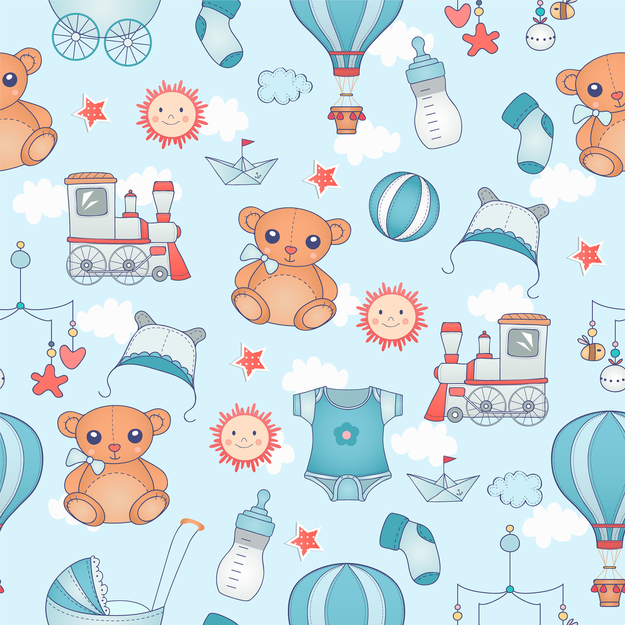 Papel de parede Autoadesivo Infantil Menino Bebe Ursinhos Azul