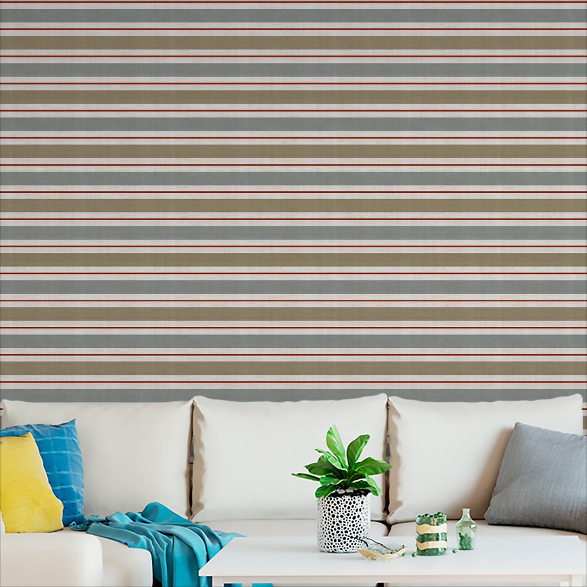 Papel de parede Autoadesivo Listras Horizontais Marrom Vermelho e Azul