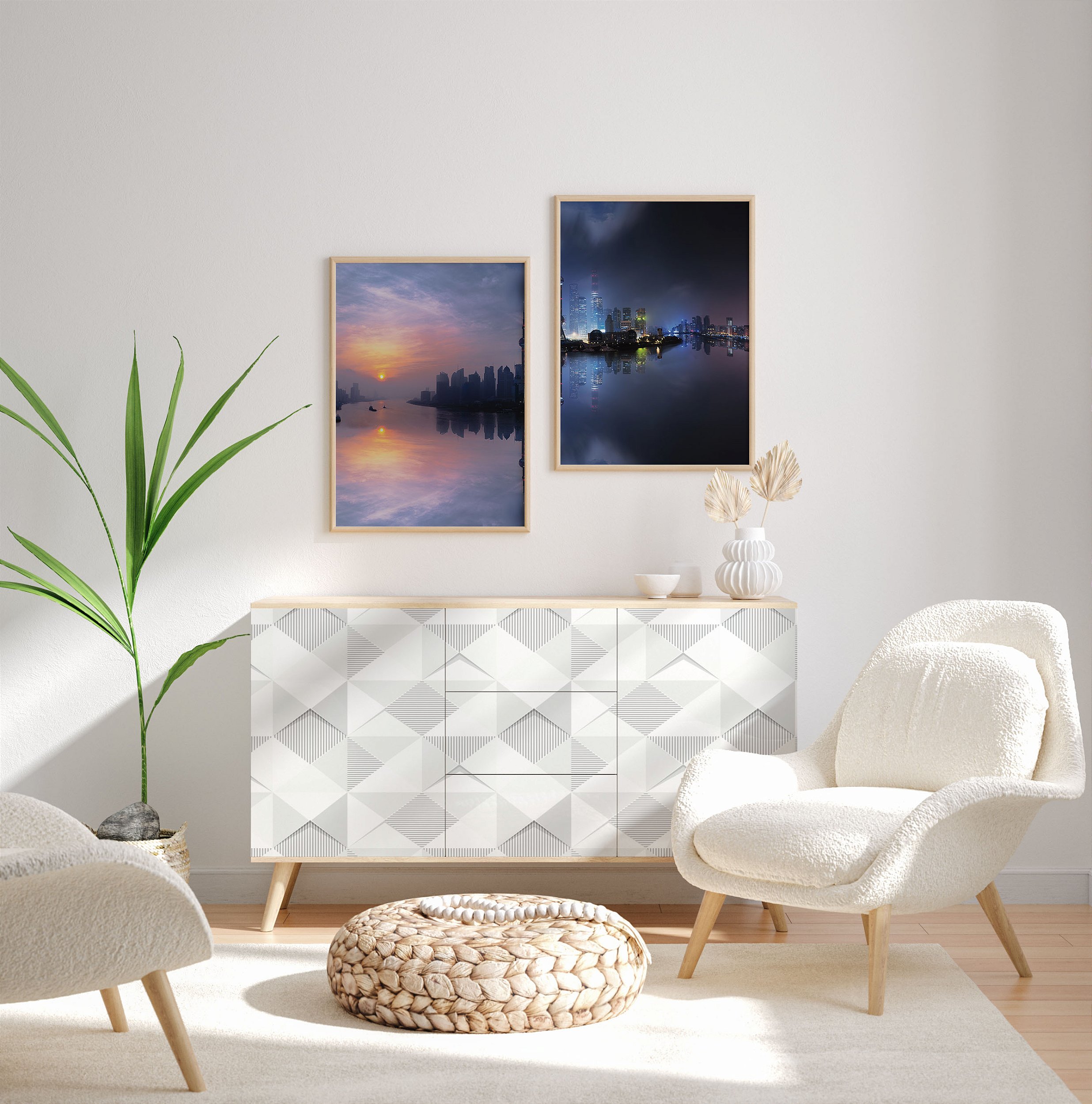 Papel de parede Autoadesivo Quarto Formas Geométricas Quadrados Tons De Cinza