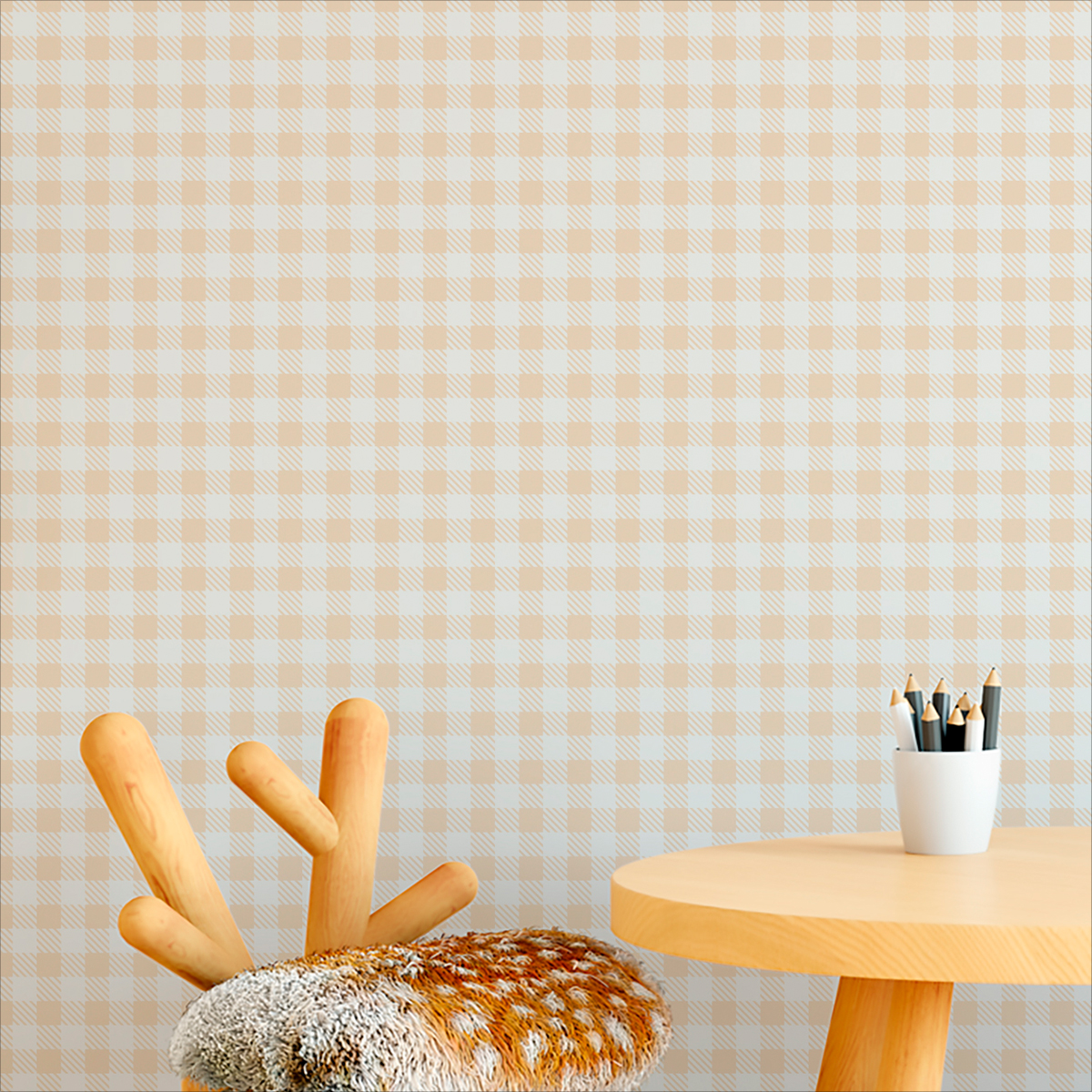 Papel de parede Autoadesivo Quarto Infantil Xadrez Laranja