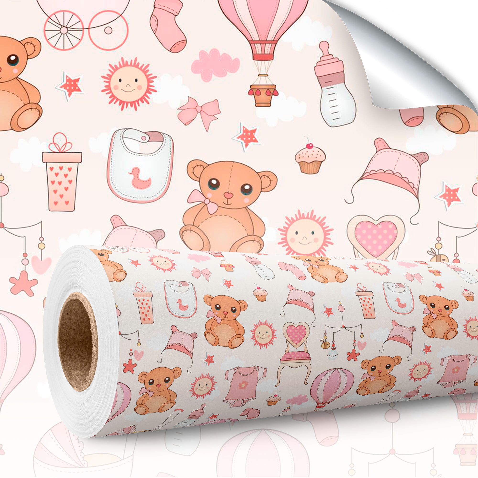 Papel de parede Autoadesivo Quarto Menina Bebe Ursinhos Rosa