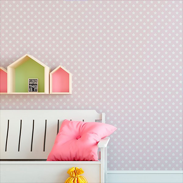 Papel de parede Autoadesivo Quarto Menina Rosa com Estrelas