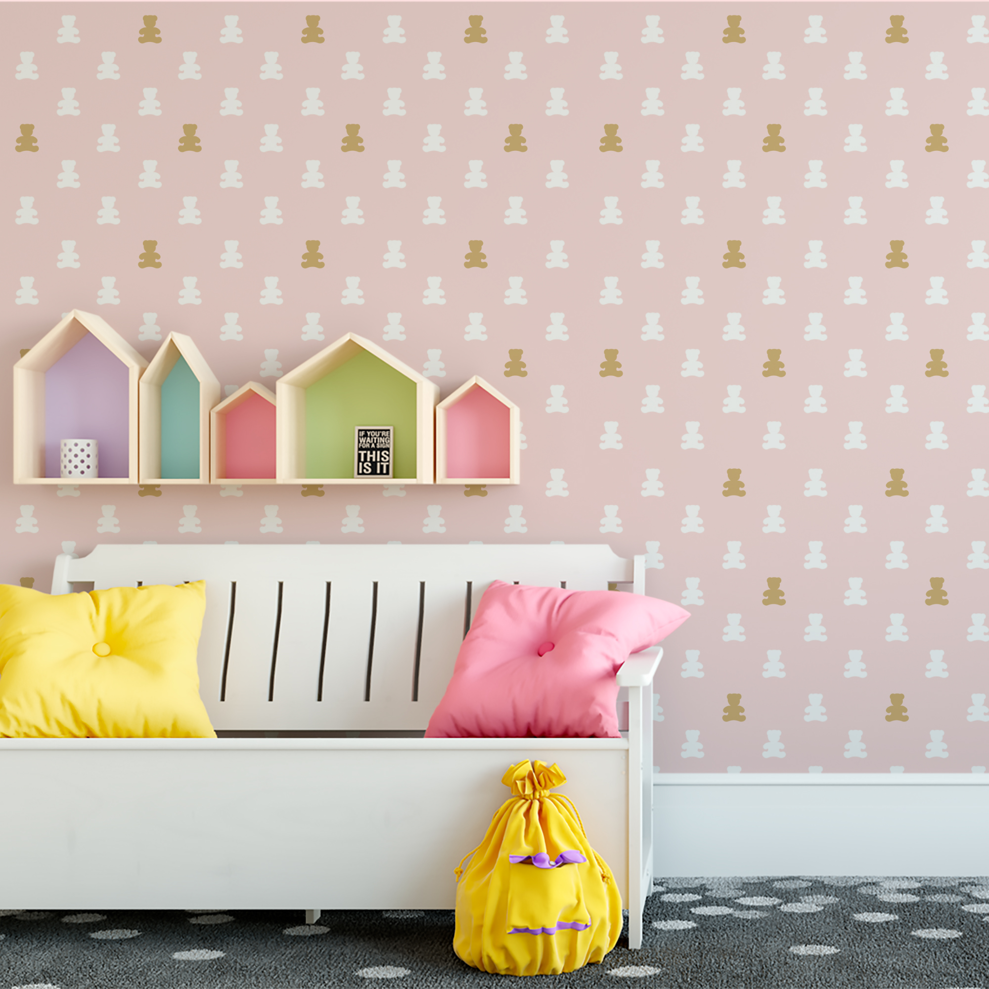 Papel de parede Autoadesivo Quarto Menina Rosa com Ursinhos