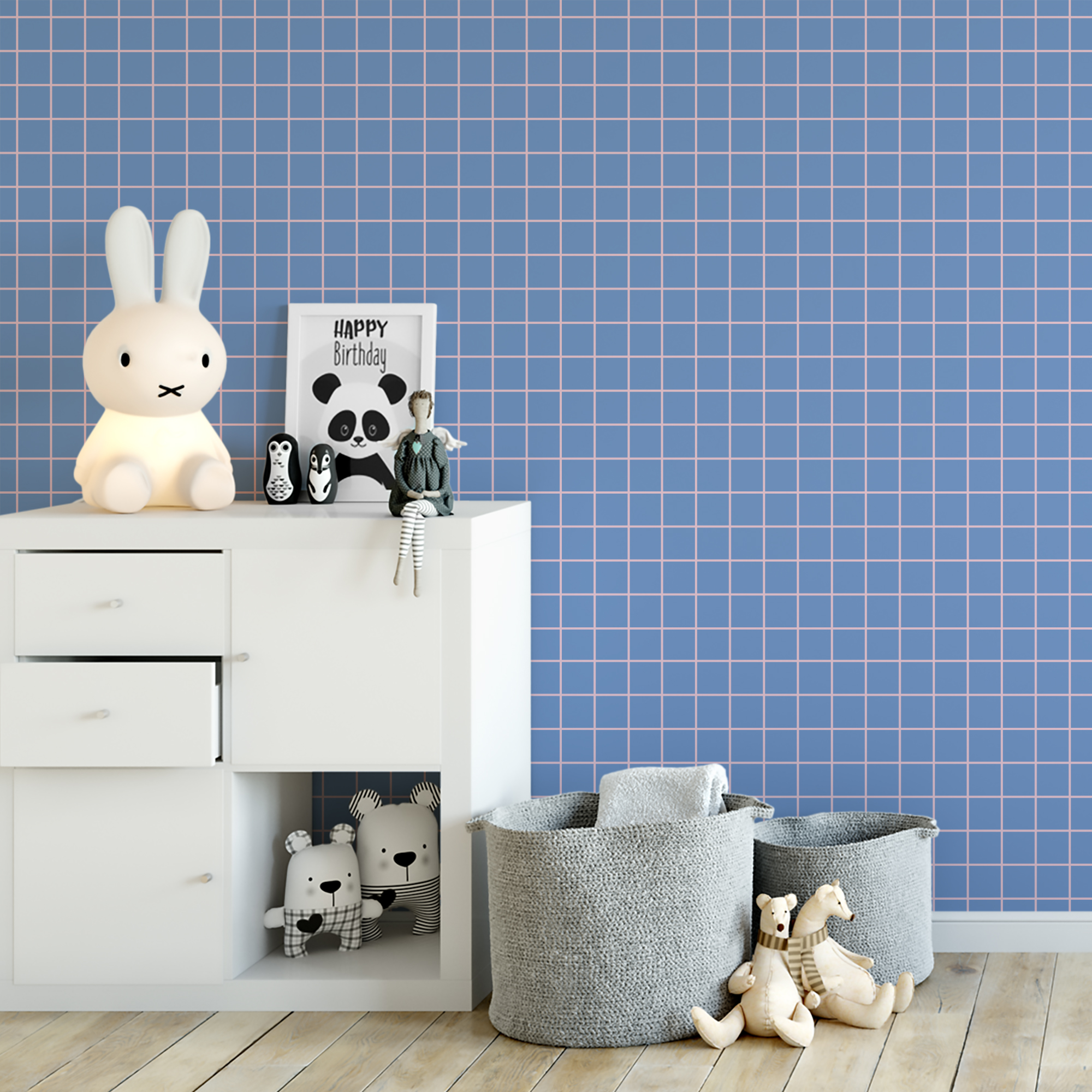 Papel de parede Autoadesivo Quarto Menino Quadriculado Azul