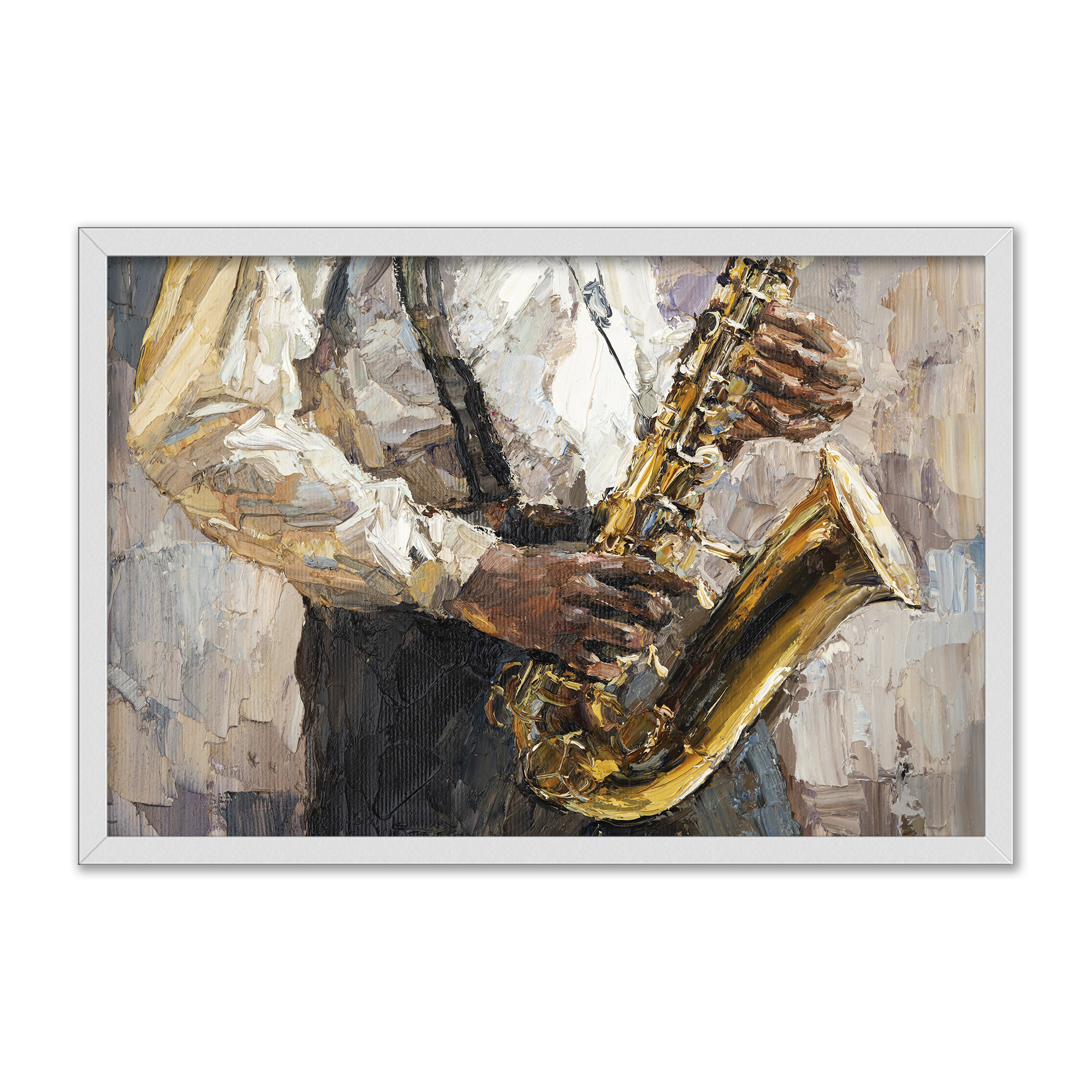 Quadro Decorativo Efeito Pintura Músico E Seu Saxofone