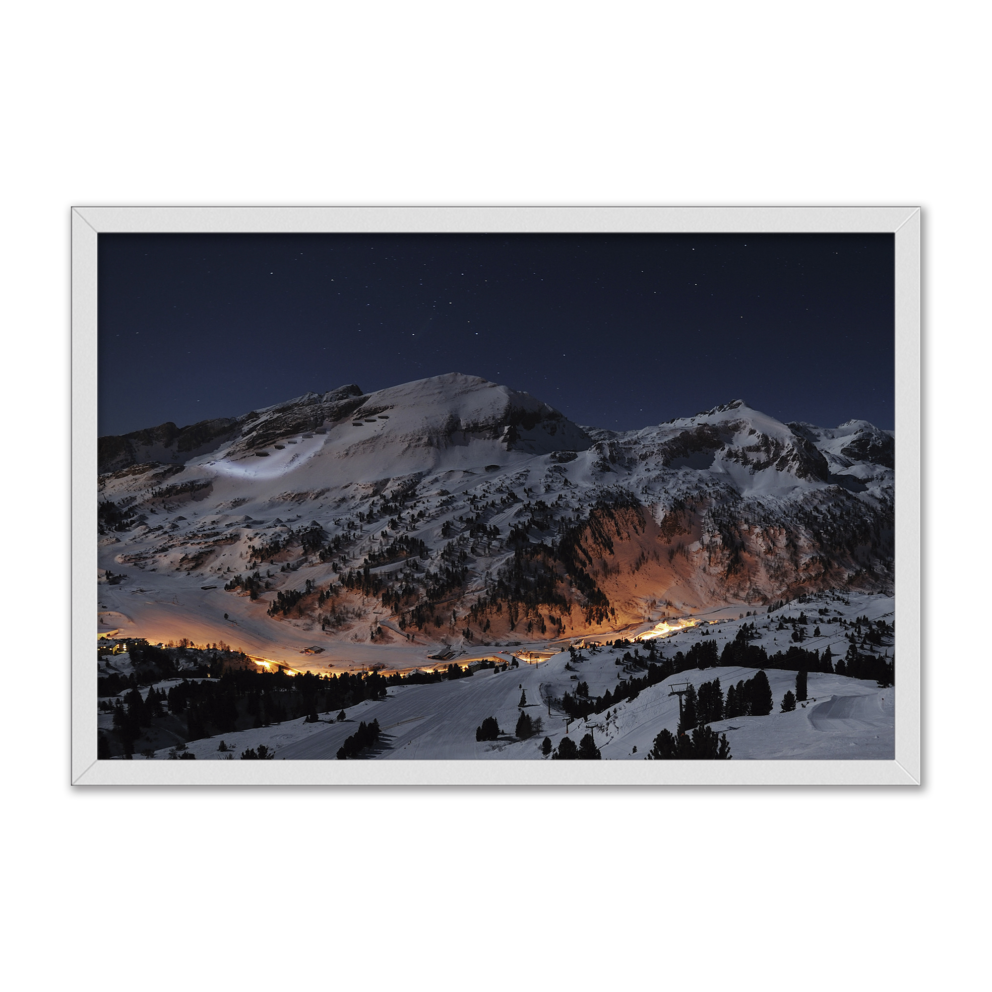 Quadro Decorativo Cabanas na Montanha Ilumnado A Noite