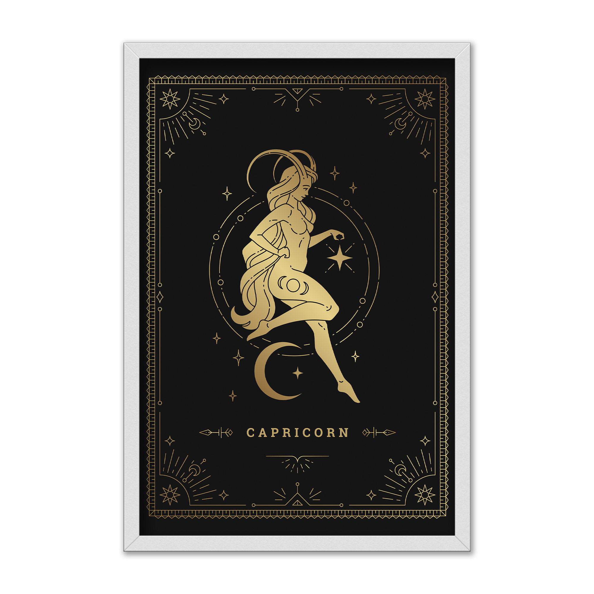 Quadro Decorativo Horóscopo Signo Capricórnio Detalhes Dourados