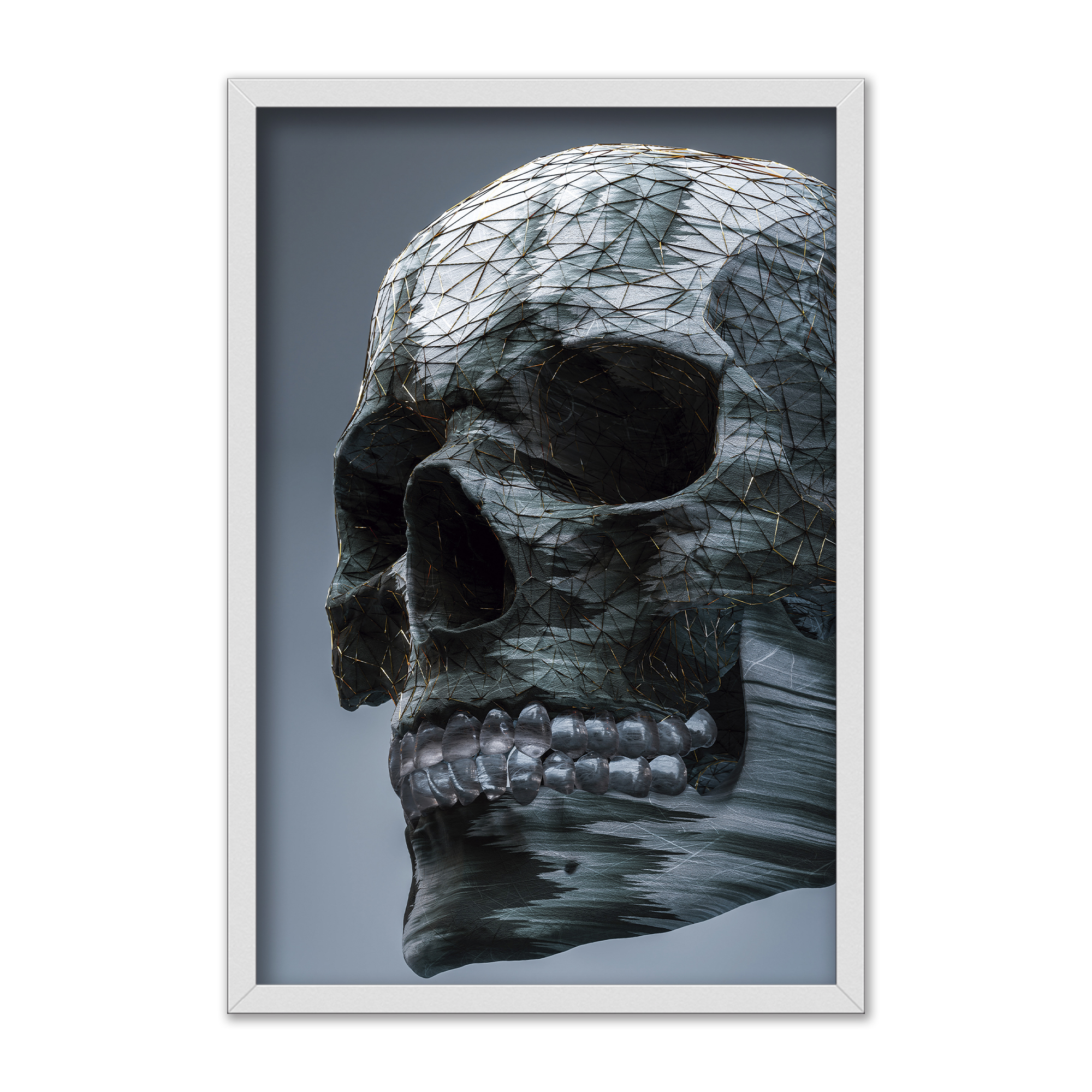 Quadro Decorativo Caveira Estampa Cinza Abstrata