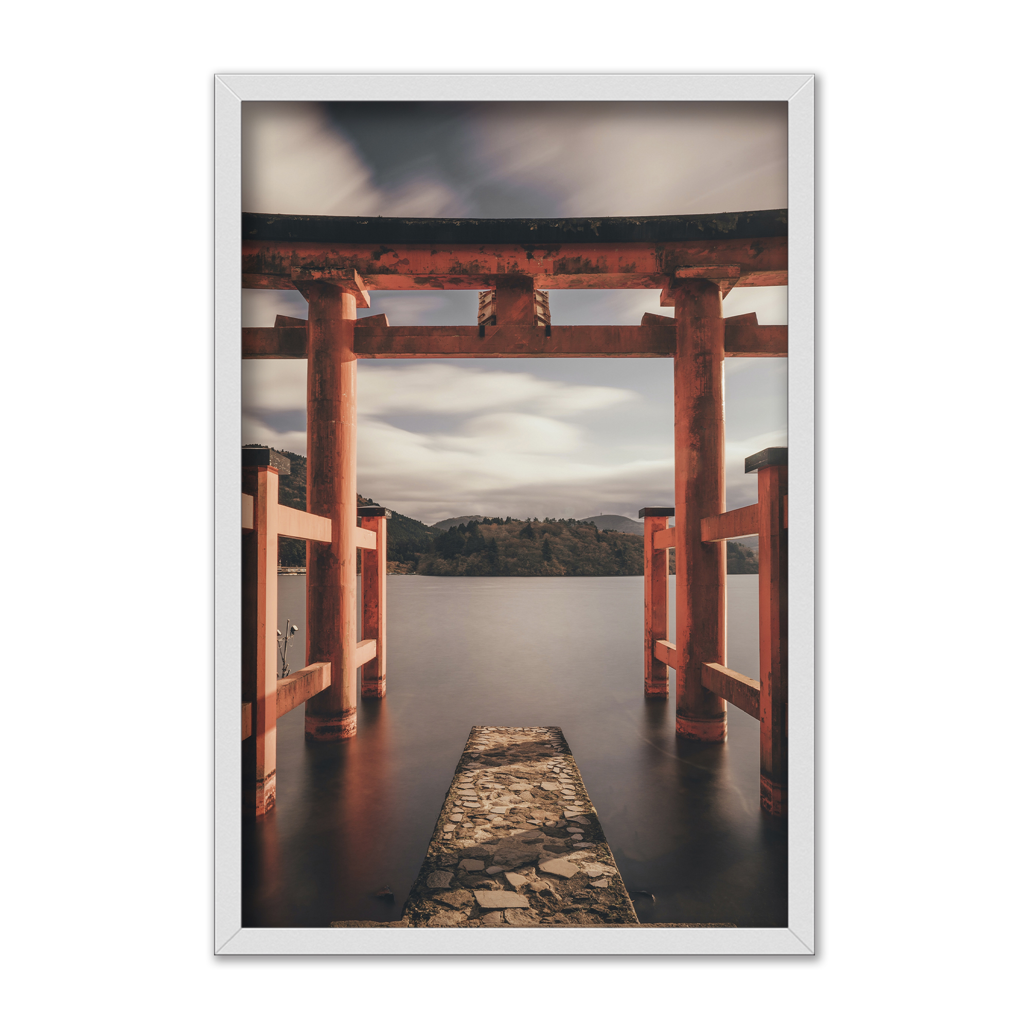 Quadro Decorativo Portão Portal Vermelho Japonês Para O Lago
