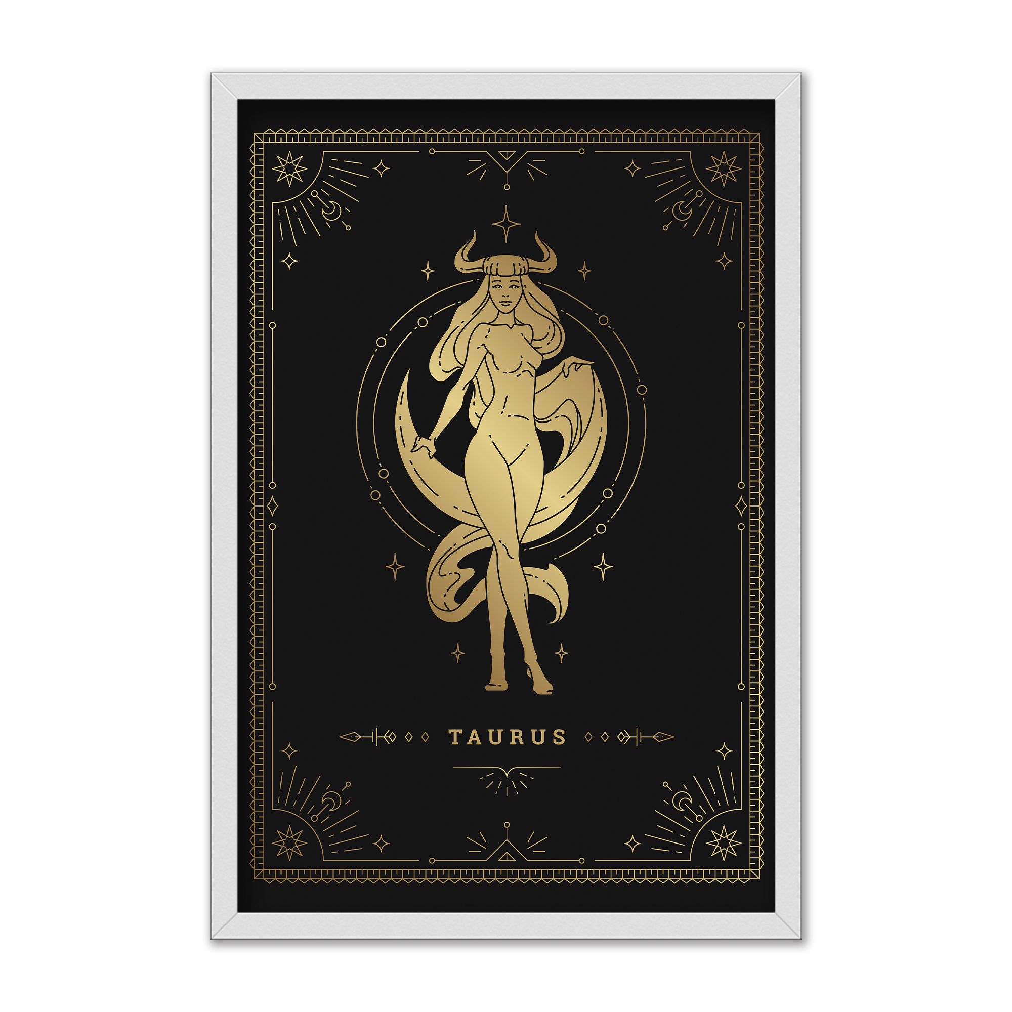 Quadro Decorativo Horóscopo Signo Touro Detalhes Dourados