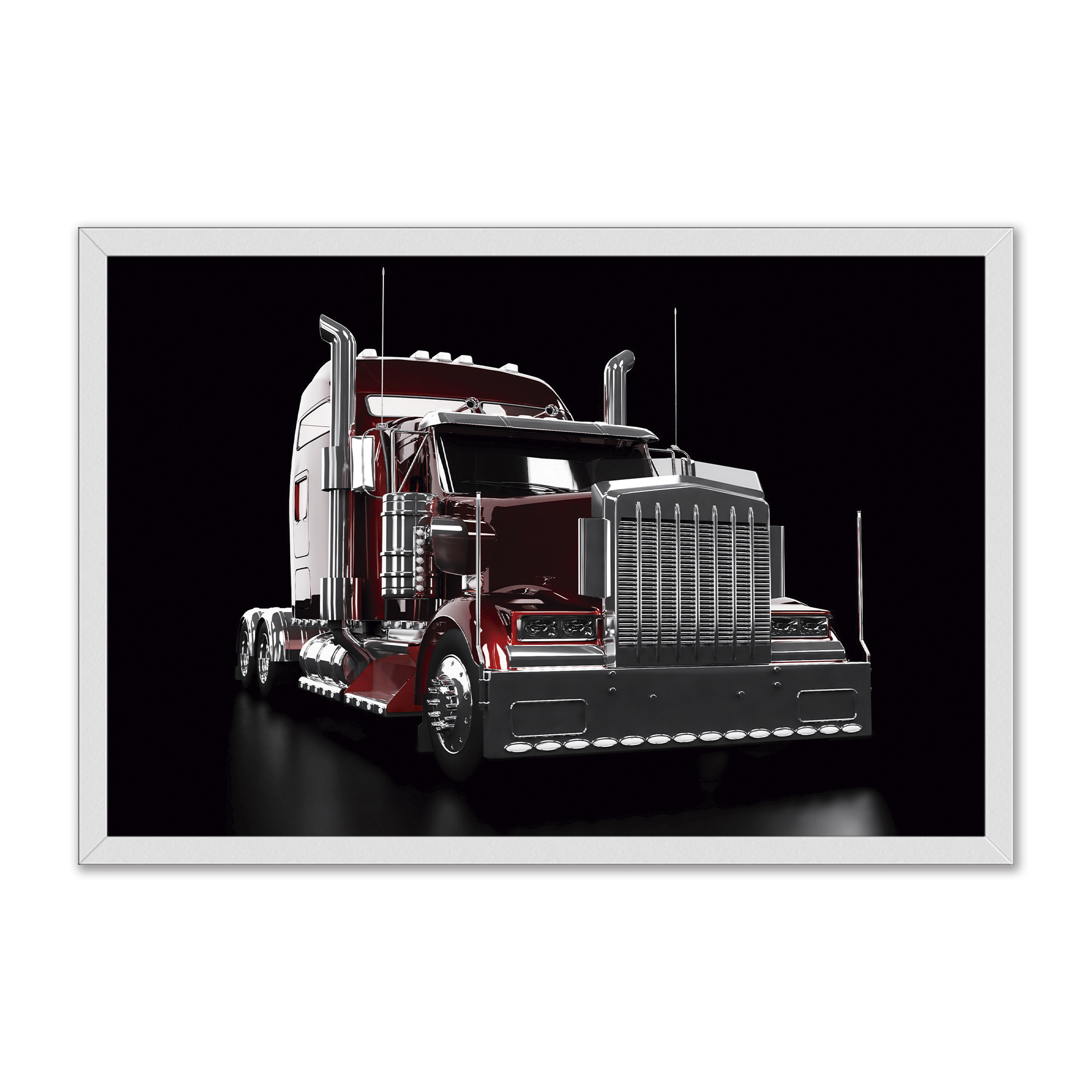 Quadro Decorativo Caminhão Vermelho e Fundo Preto