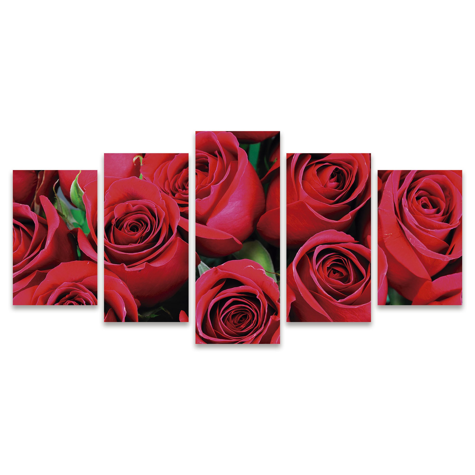 Quadro Mosaico Kit 5 Partes Rosa Vermelha Zoom Flores Elegante Sala Quarto